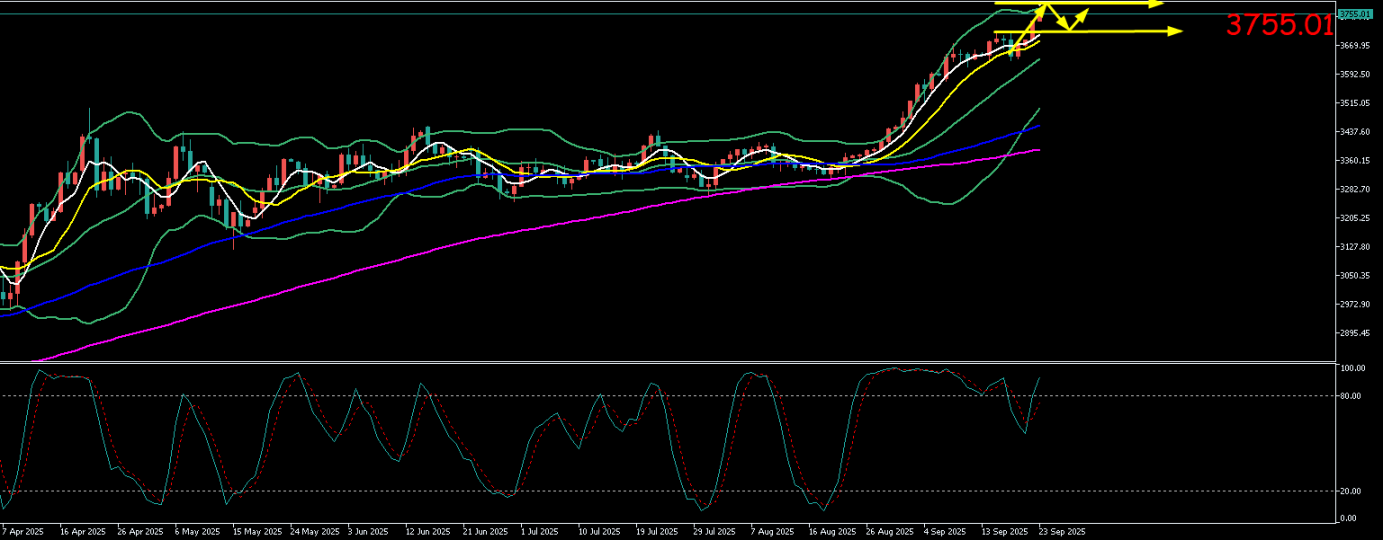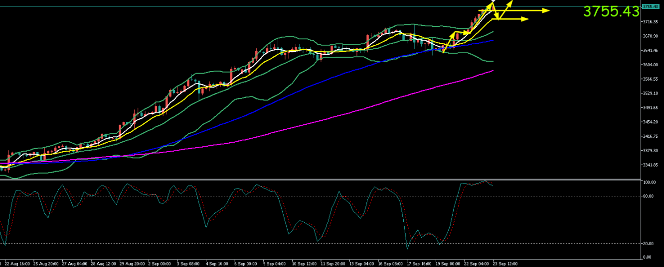 黄金周一(9.22)最高上探至3749.48美元/盎司,最低触及3685.3美元/盎司。收盘于3745.54美元/盎司,周三(9.24)开于3745.54元/盎司,截至目前最高上探至3759.77美元/盎司,最低触及3736.76美元/盎司,行情高位震荡,现报价3752.93。