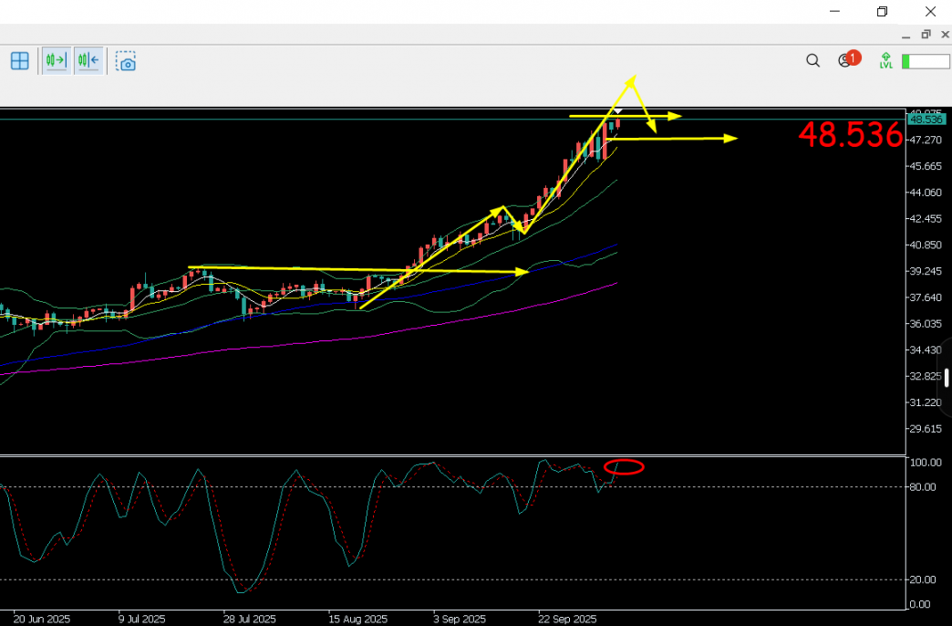 下方支撑位:48.2 47.82 47.2