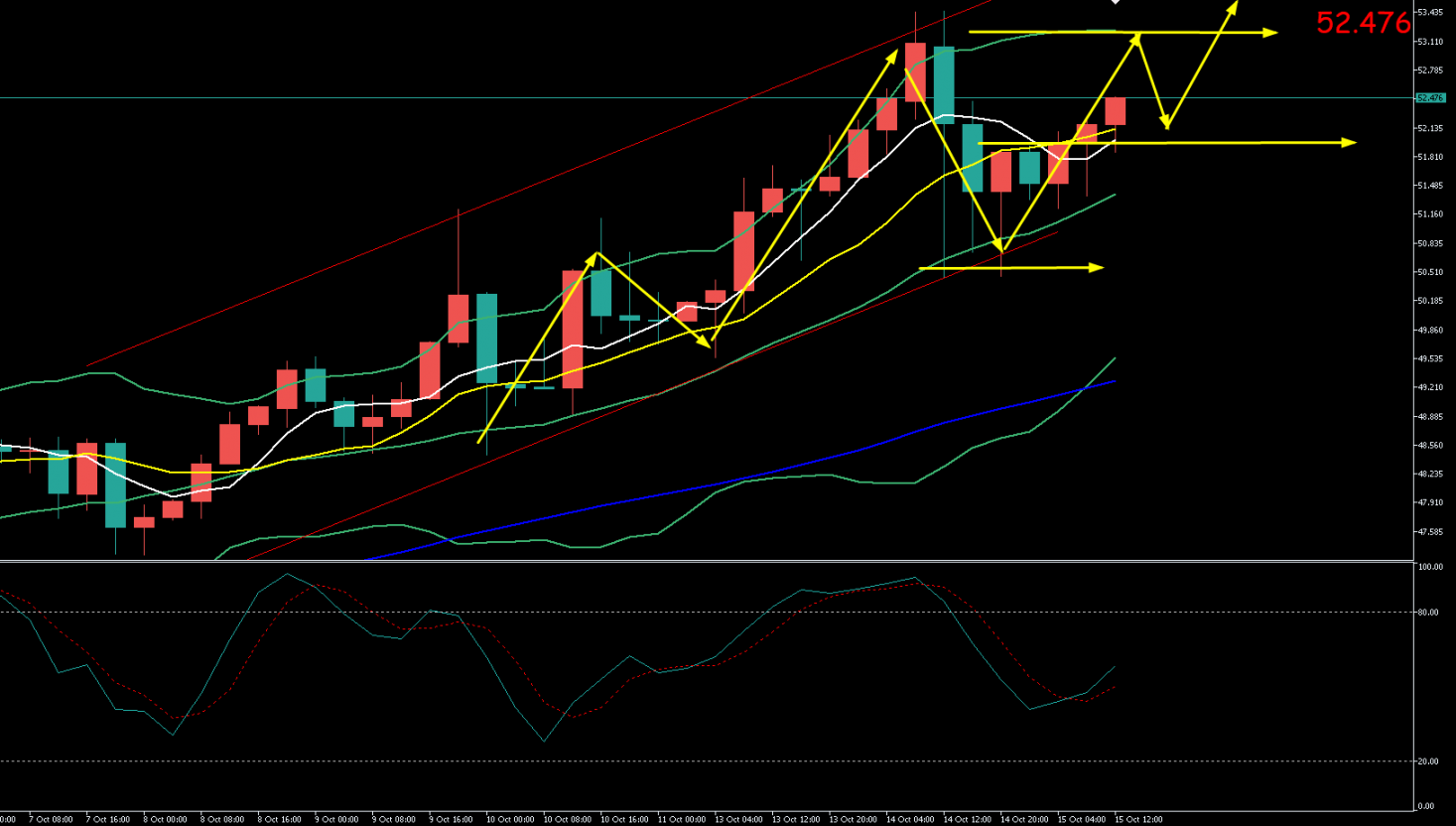 2,下方52附近做多,止损51.8 目标位52.6 53