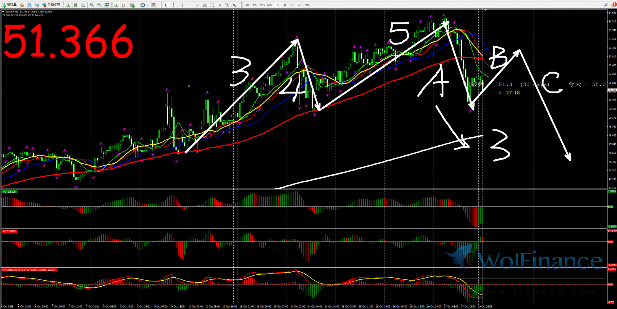 3、白银短线关注小时图51.30附近是否有多单机会;