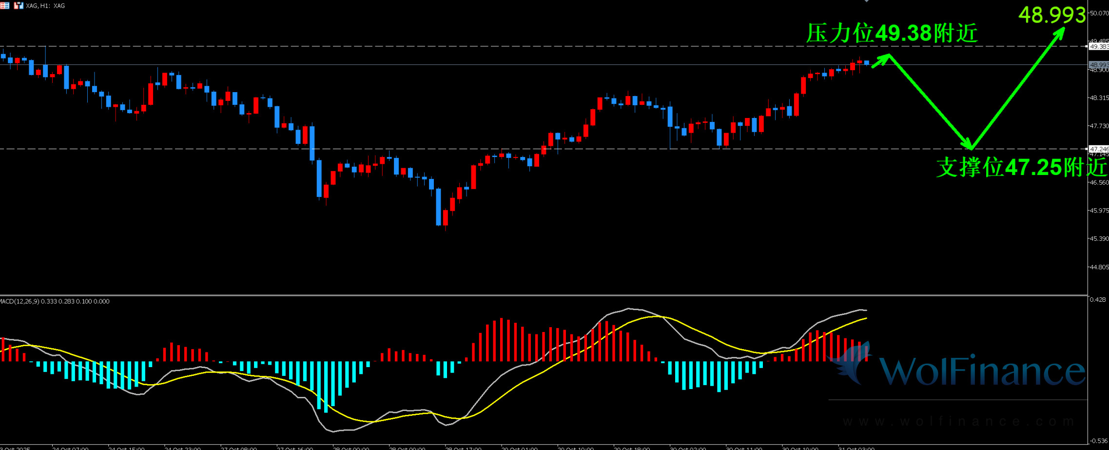 周四(10月31日)白银亚盘小幅承压回落,关注下方支撑位多单布局方案。基本面影响因素有:12月白银期货多头的下一个上行价格目标是收盘价高于50.00美元的强劲技术阻力位。空头的下一个下行价格目标是收盘价低于45.00美元的强劲支撑位。第一阻力位见本周高点48.595美元,然后是49.00美元。下一个支撑位见48.92美元,然后是本周低点45.51美元。