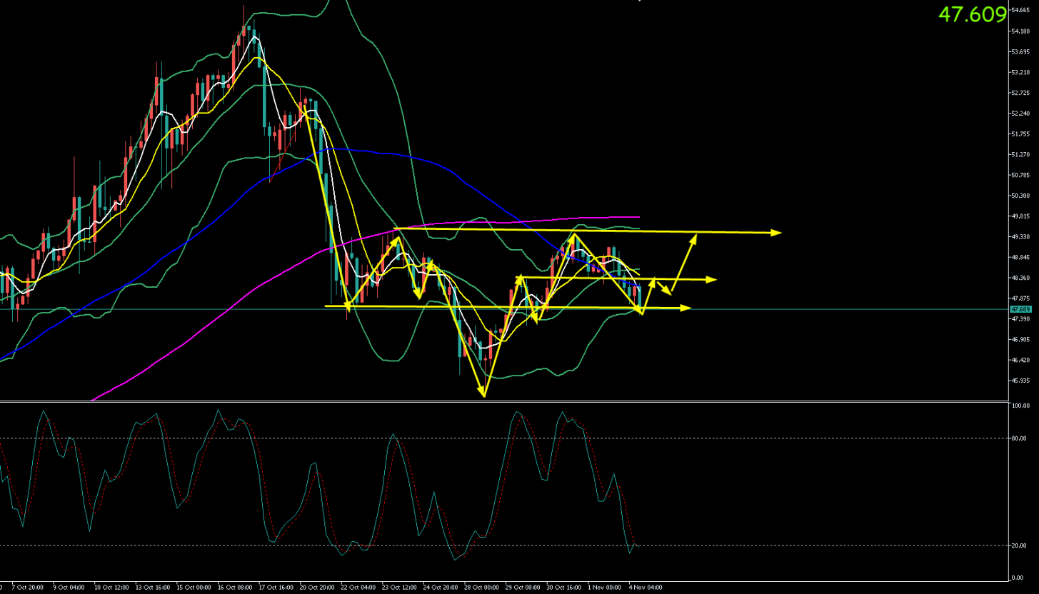 2,亚欧盘下方47.4附近做多,止损47.2 目标位47.8 48.5