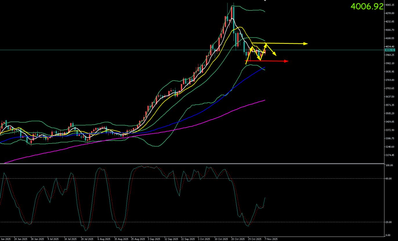黄金周四(11.5)最高上探至3990美元/盎司,最低触及3929.39美元/盎司。收盘于3979.73美元/盎司,周五(11.6)开于3976.37元/盎司,截至目前最高上探至4014美元/盎司,最低触及3974.33美元/盎司,黄金早间小时级别震荡上行,现报价4011.76。
