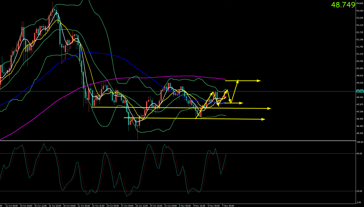 1,亚欧盘上方49.5附近做空,止损49.7 目标位49 48.5