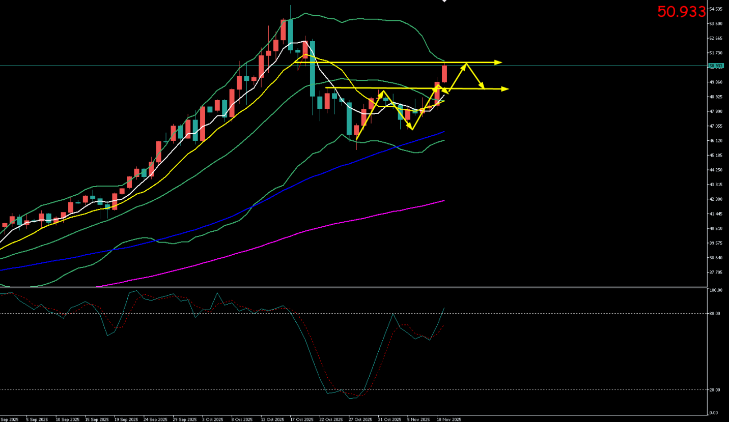 1,亚欧盘上方51.3附近做空,止损51.5 目标位50.8 50.3