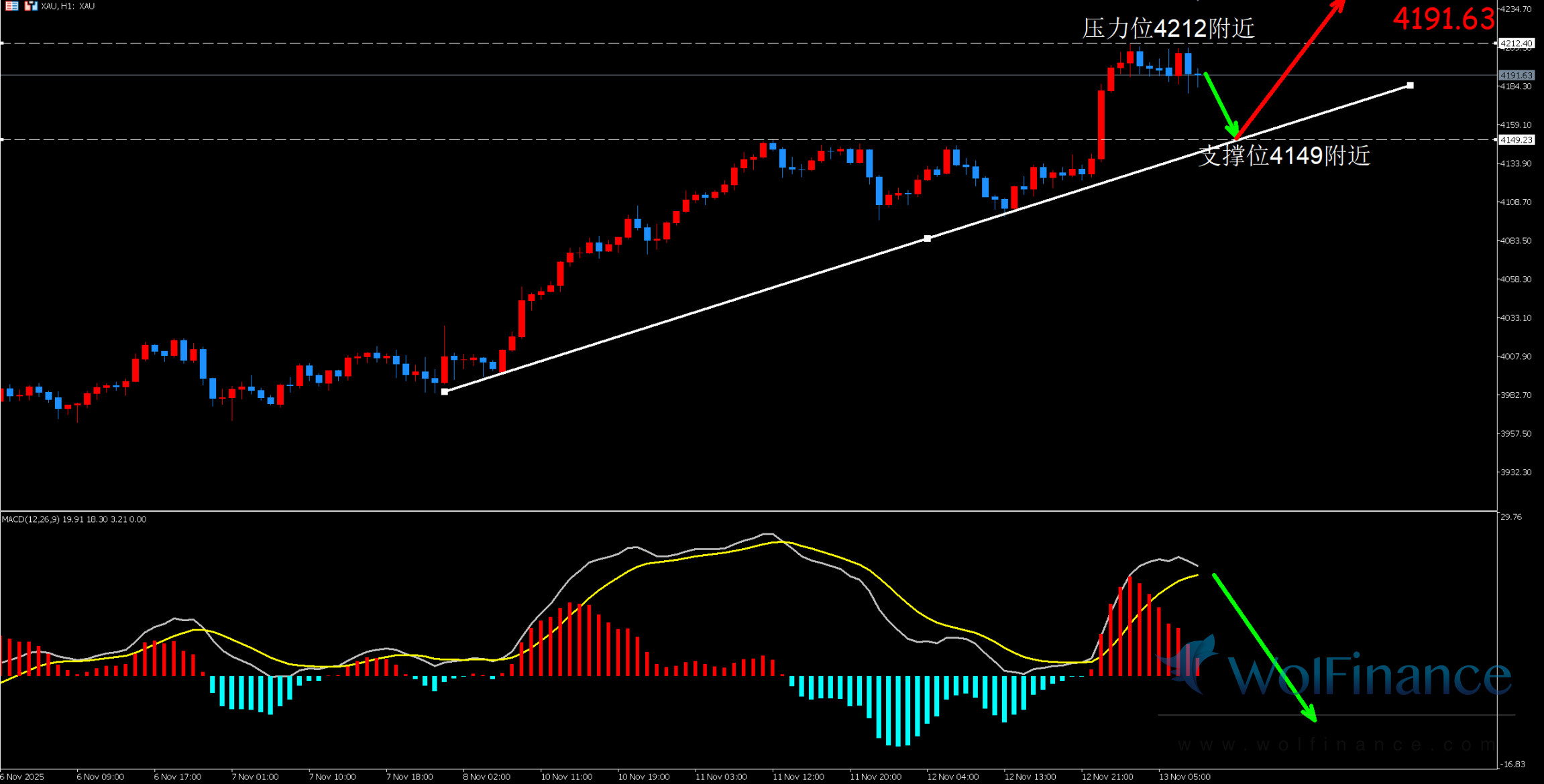 1. 黄金技术图表显示目前K线支撑位4150附近