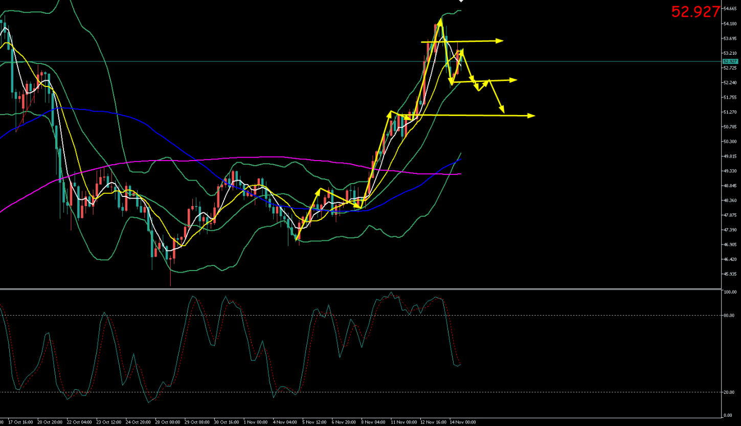 2,亚欧盘下方52.2.附近做多,止损52 目标位52.8 53.4