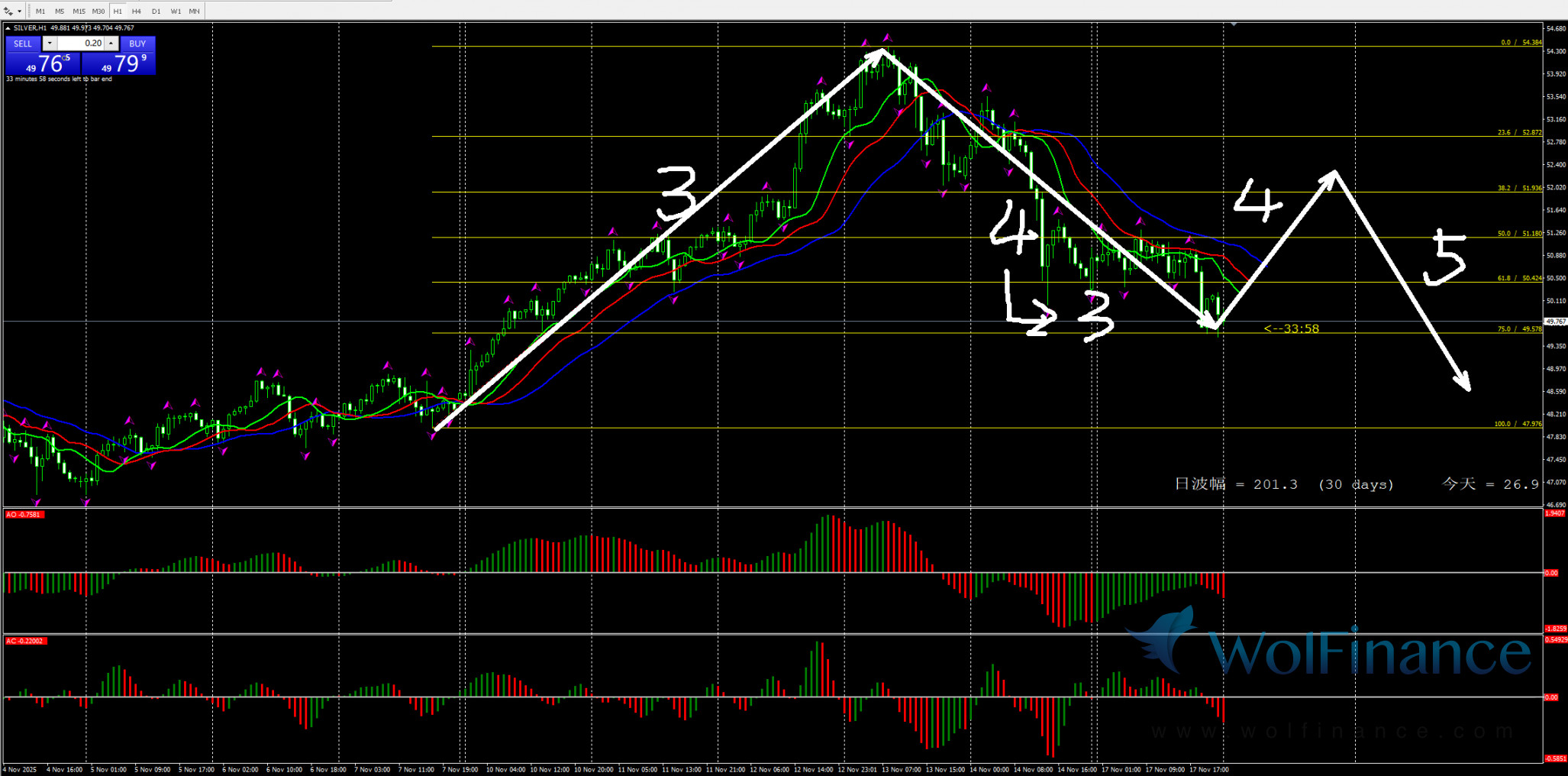 2、白银回调关注49.60附近做多,止损:49.10;目标:50.10;50.60;51.10;