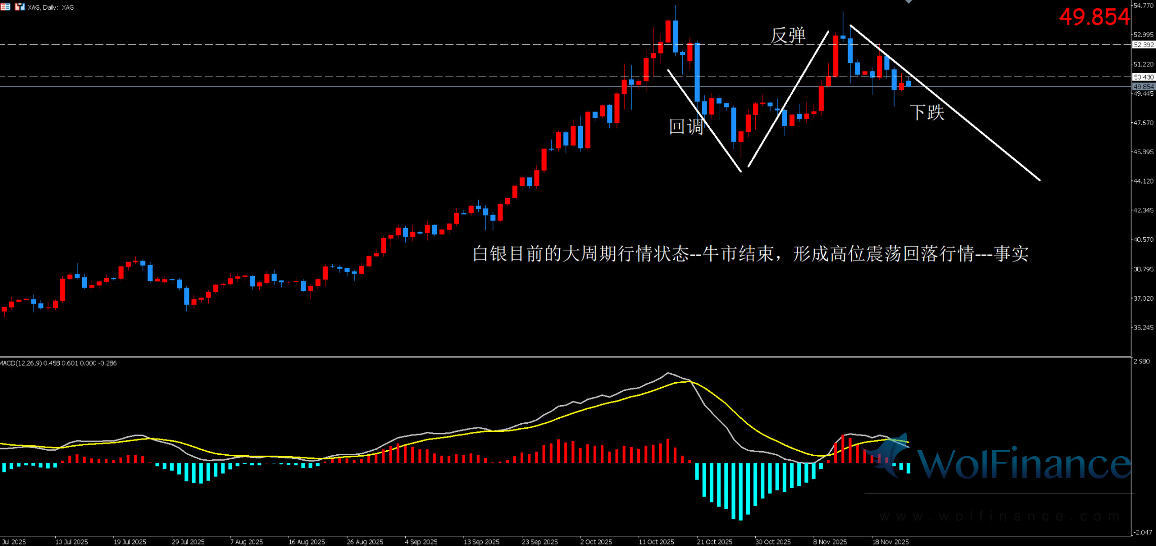 1. 白银技术图表显示目前K线支撑位49.30附近