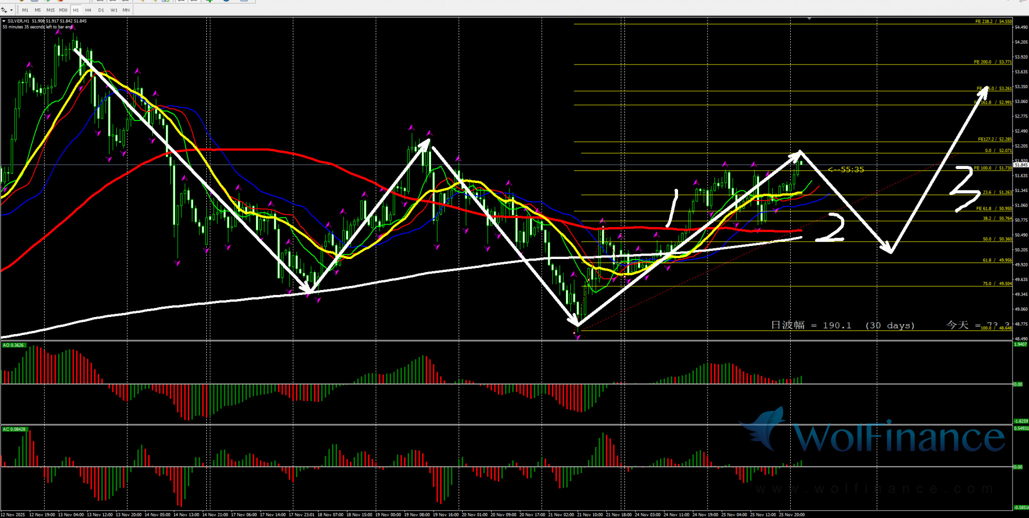 1、白银反弹关注52.30附近做空,止损:52.80;目标:51.80;51.30;50.80;