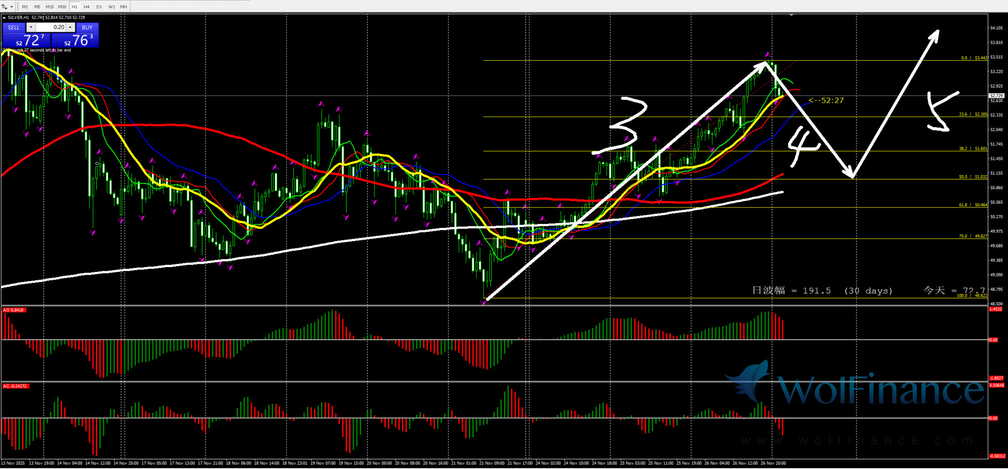 1、白银反弹关注53.70附近做空,止损:54.10;目标:53.20;52.70;52.20;
