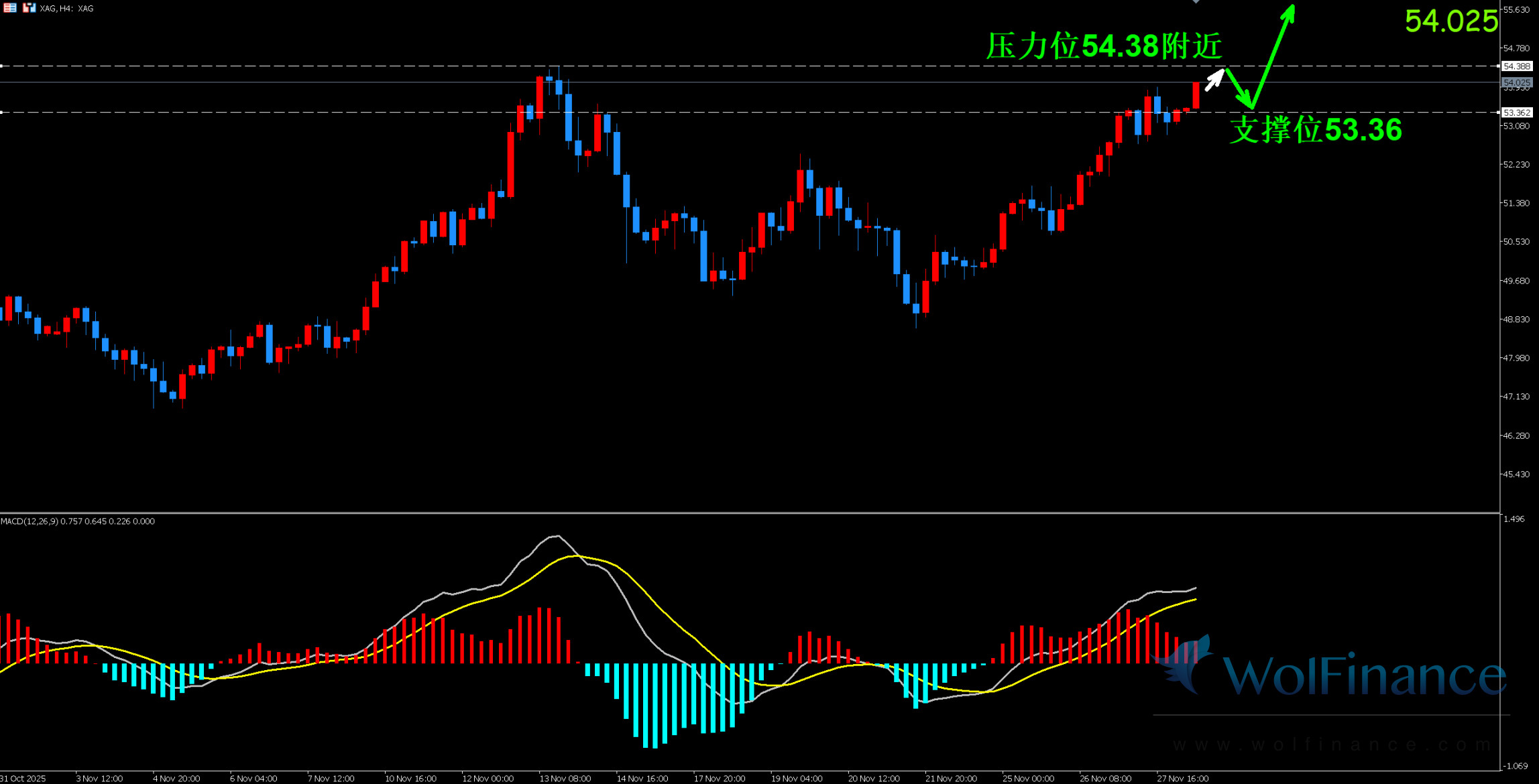 周五(11月28日)白银亚盘震荡上涨,关注回落支撑位多单布局。白银现货价格53.76附近。亚市早盘先跌后涨,亚盘尾盘左右快速拉升至日内高点53.9附近,随后逐步回落并在53.2-53.3区间进入横盘震荡。受降息预期升温、工业需求激增以及中国市场供应紧张对多头形成支撑等多重因素影响,白银价格涨势持续延续。交易商正密切关注12月市场是否会出现大幅波动。感恩节当周,现货白银依旧保持强劲走势,此次涨势传递出明确信号:买家交易活跃度居高不下,而美联储的政策动向堪称此次涨势的核心推手。本周三,现货白银价格触及53.39美元,当日涨幅超3.5%;过去一个月累计涨幅已接近13.5%,同比涨幅更是超75%。这一涨幅看似惊人,却符合市场规律:在贵金属市场真正迎来牛市行情时,白银往往会迎来暴涨,而非仅因避险需求出现小幅波动。