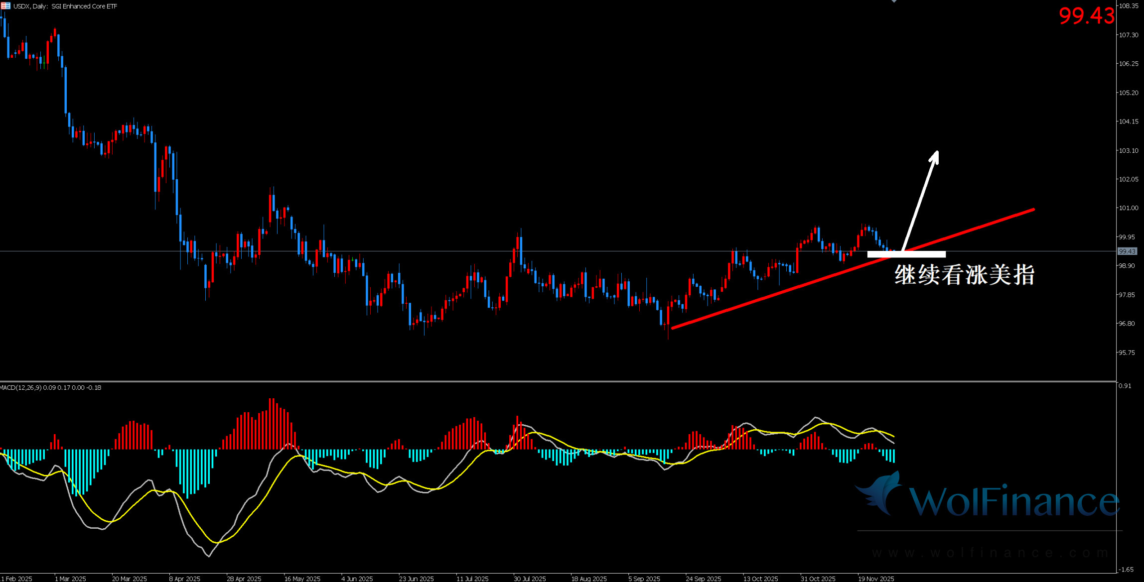 美元指数:图表显示目前美指为震荡反弹行情。