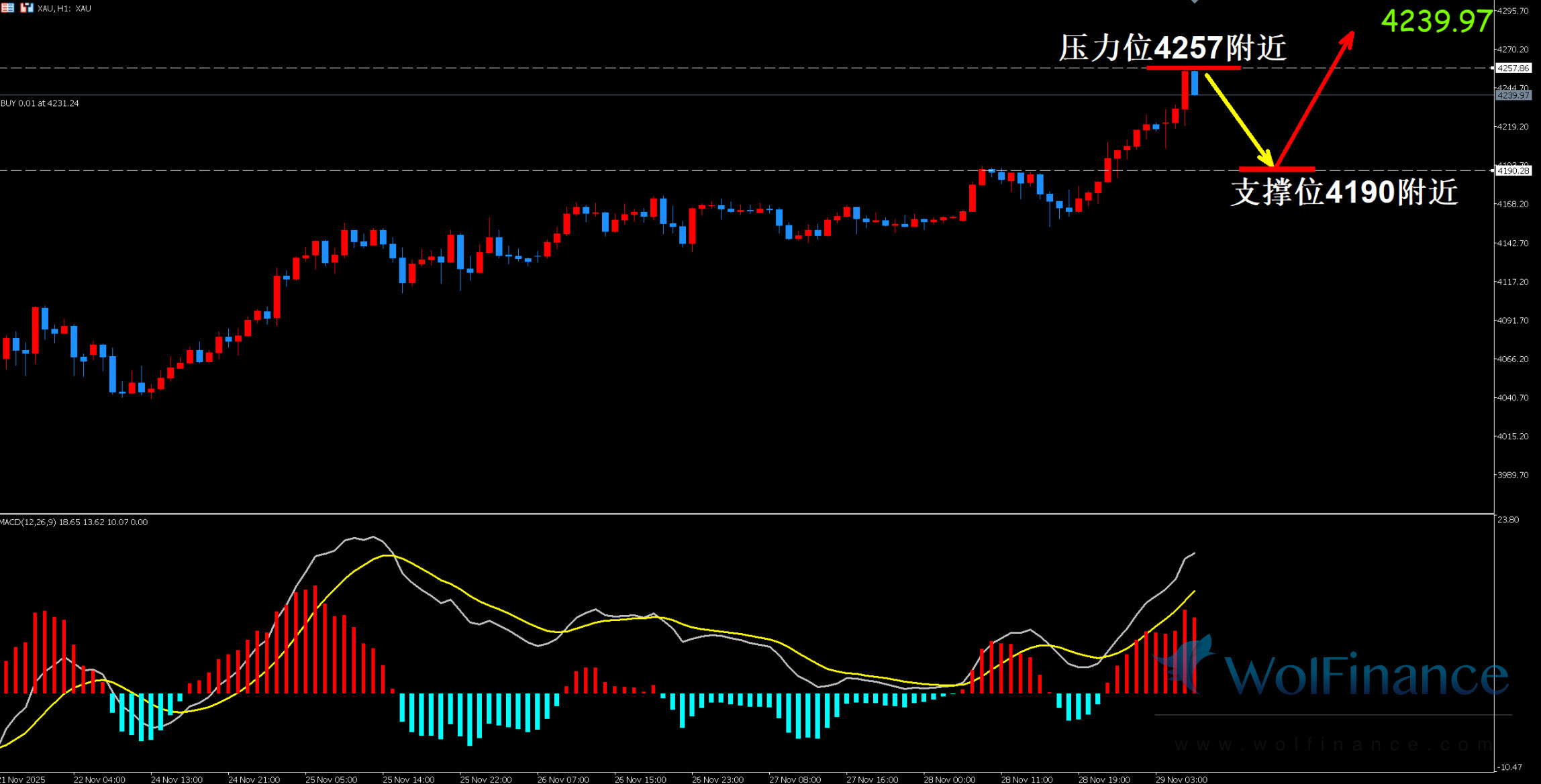 1.布局方案1:4190附近多单布局,止损4180, 止盈4260-----4290区间,