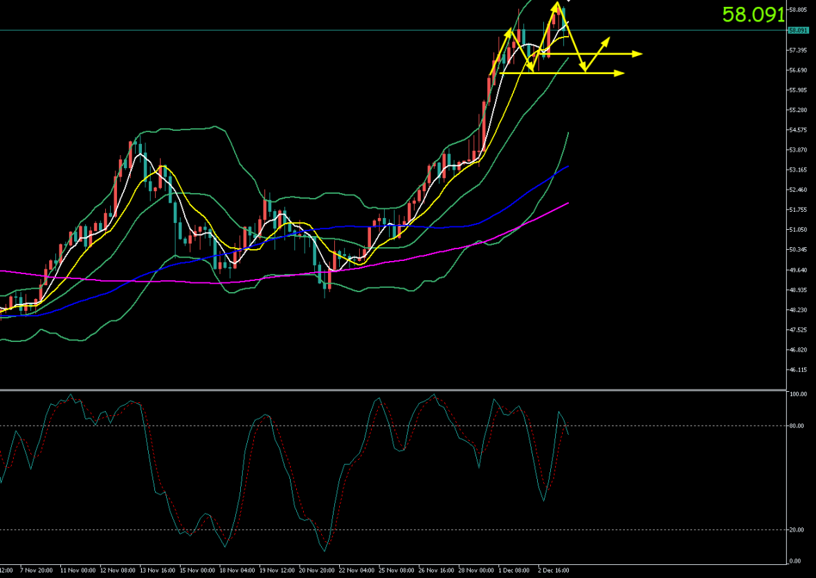 1,亚欧盘上方58.4附近做空,止损58.65目标位57.8 57.4