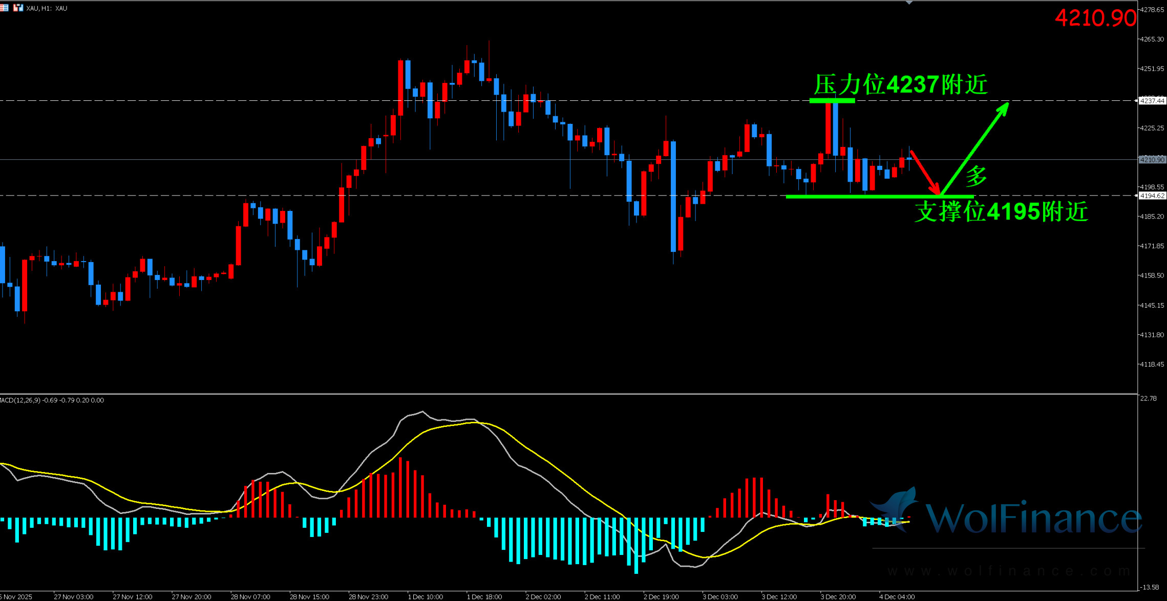 1.布局方案1:4195附近多单布局,止损4179, 止盈4230-----4260区间,