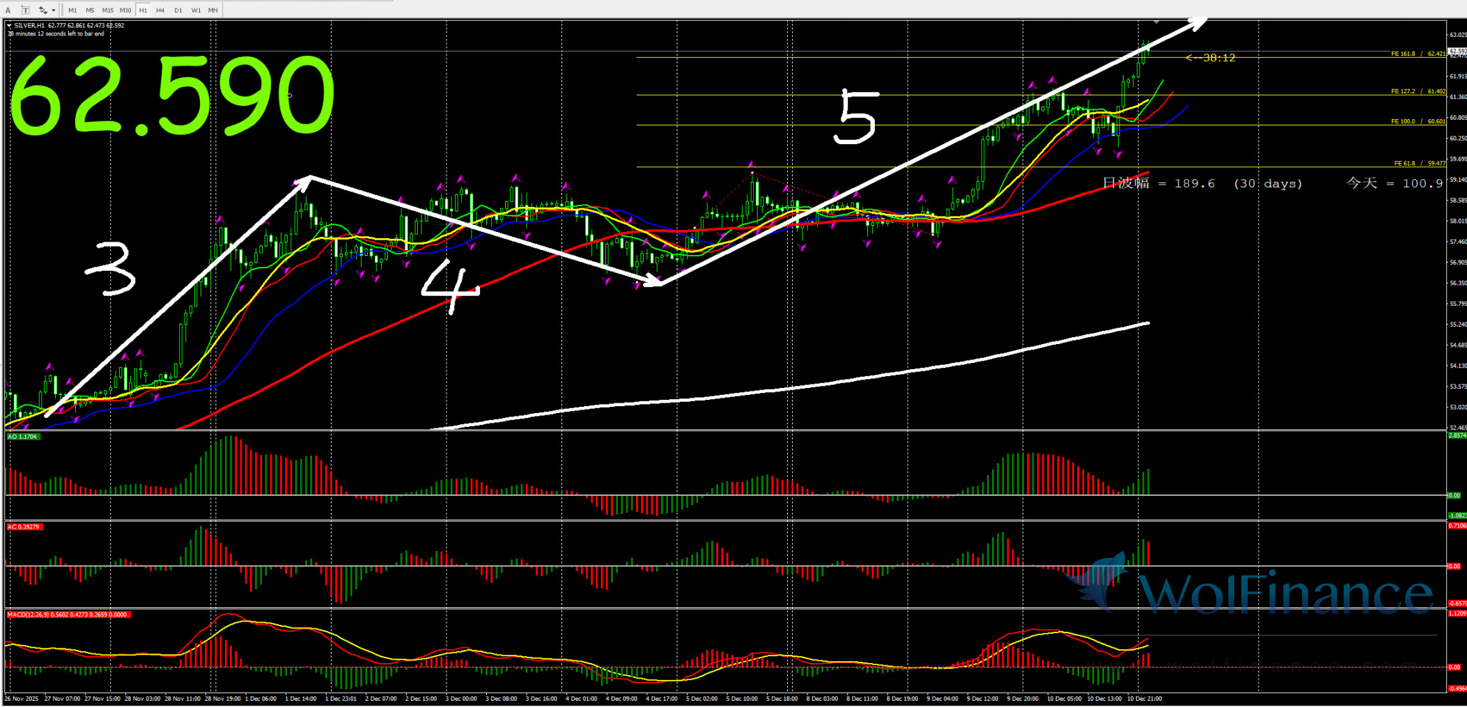 3、白银短线关注一小时顶背离做单机会;