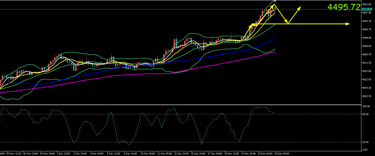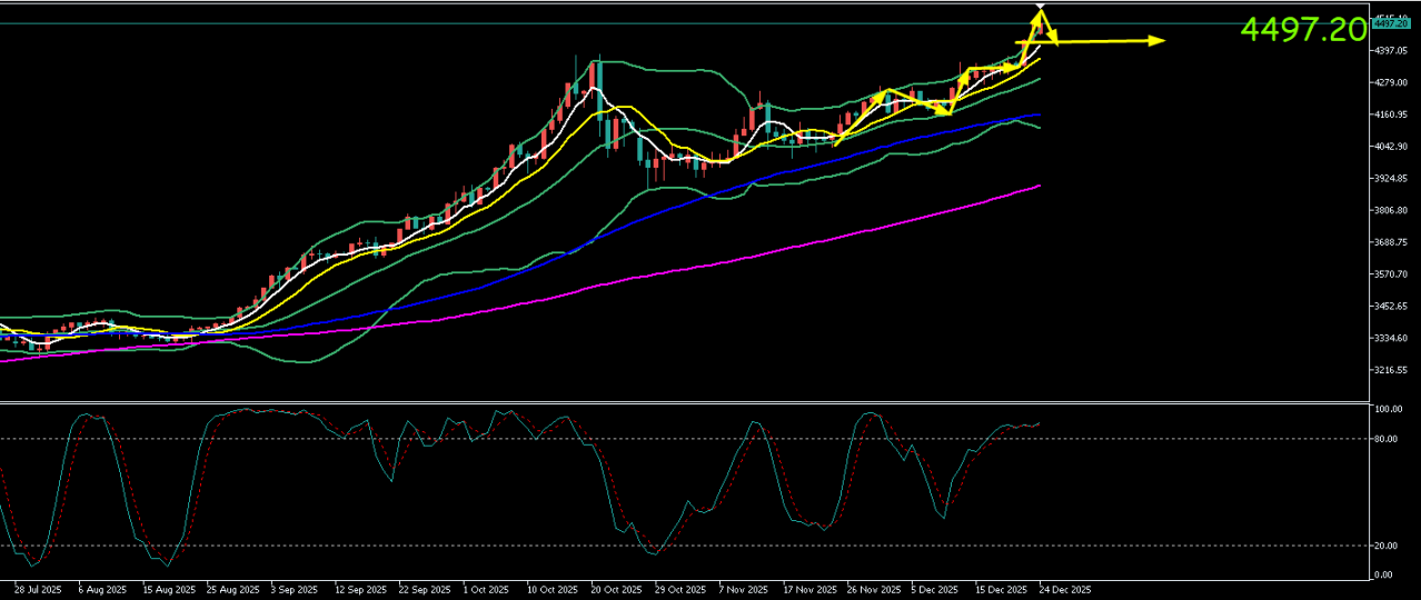 (注:以上仅为个人观点策略,仅供查阅交流,没有给予客户任何投资建议,与客户的投资无关,更不作为下单的依据。金价处于历史高位敏感区域,且正值圣诞假期,市场流动性稀薄,任何操作都可能面临巨大且不可预测的滑点风险,建议轻仓或空仓观望为主。)