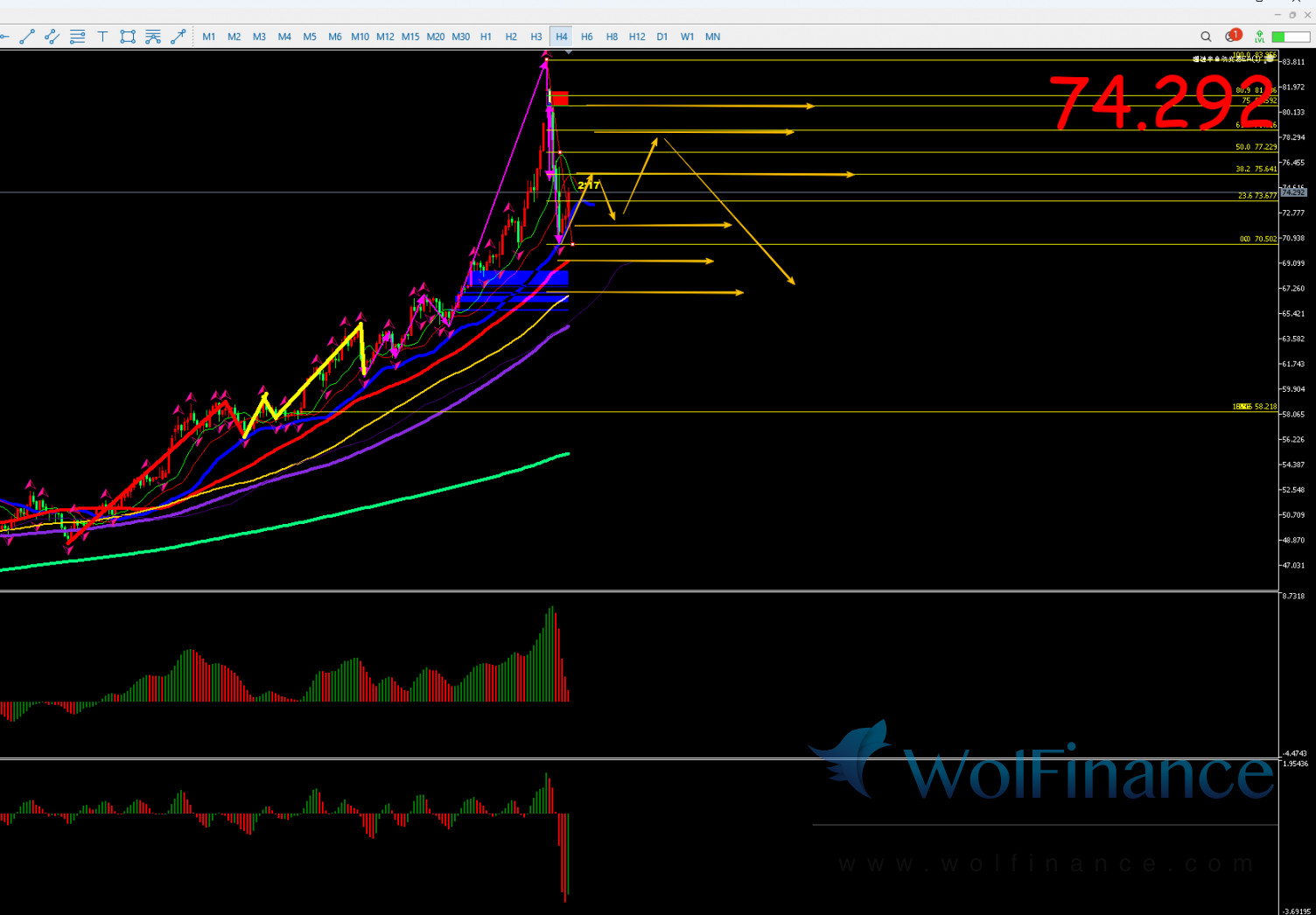 1. 激进者在72.00-71.43试空,稳健者78.90-80.61附近空,止损自带0.5美金,目标:超过0.5美金后移动保本损,之后尝试持有1-2美金波动择机出场.