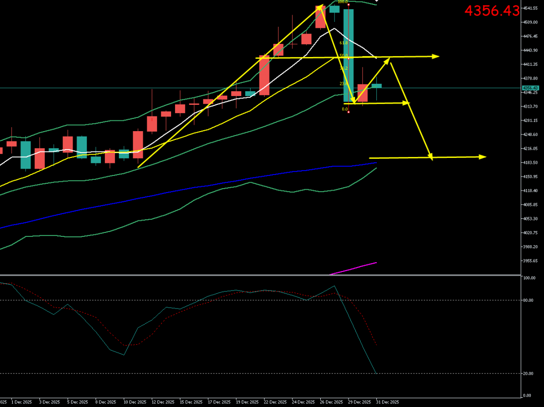 综合来看,美联储的宽松预期与长期利多因素为金价托底,但美元反弹与年末清淡交投抑制了反弹动能。技术面上,金价处于关键支撑区域上方的震荡修复期。预计亚欧盘将以区间震荡为主,操作上宜以关键支撑阻力位进行高抛低吸,静待市场选择方向。