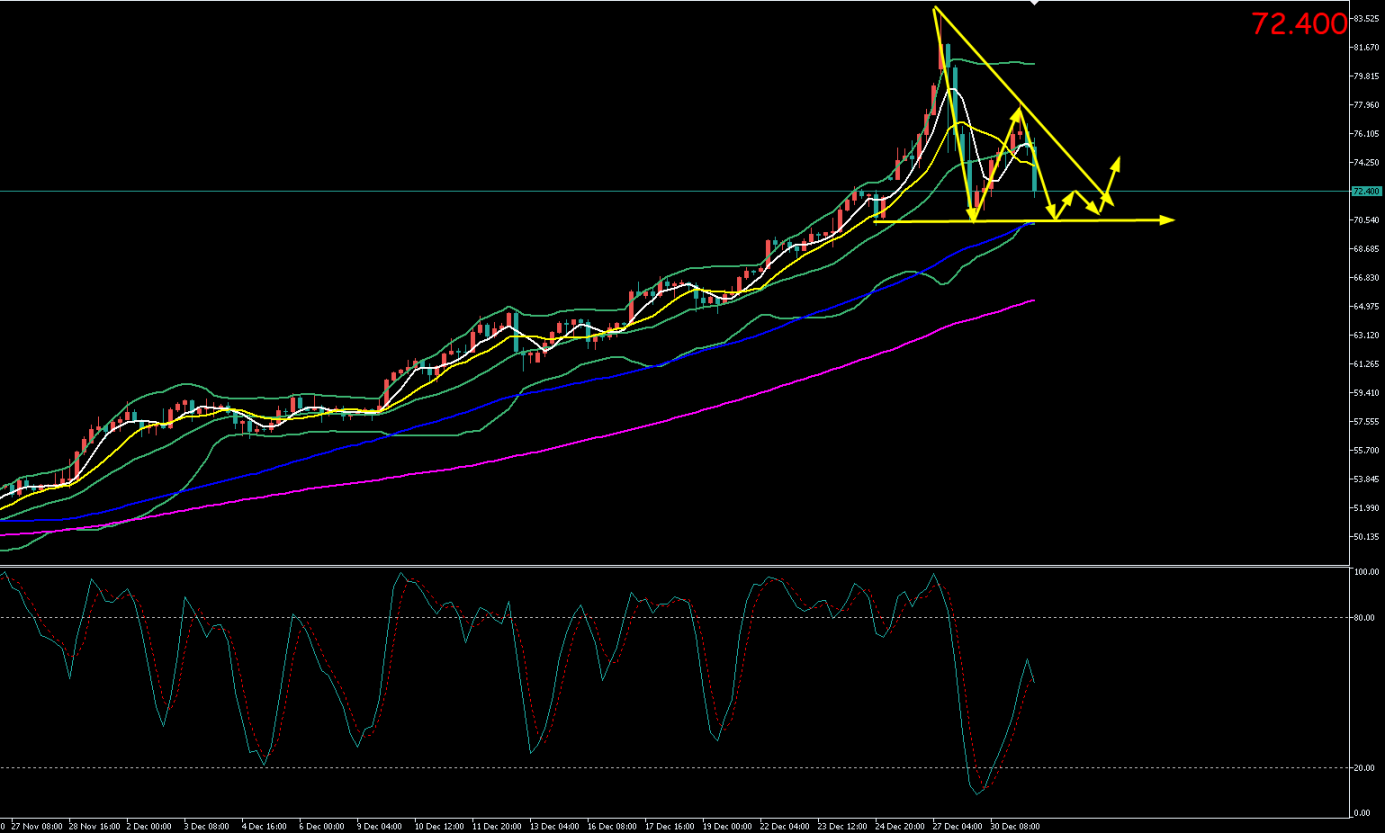 当价格深度回调至70.2美元强支撑区域,轻仓位试探性多单,止损70.00美元下方,目标71 71.8短线反弹。