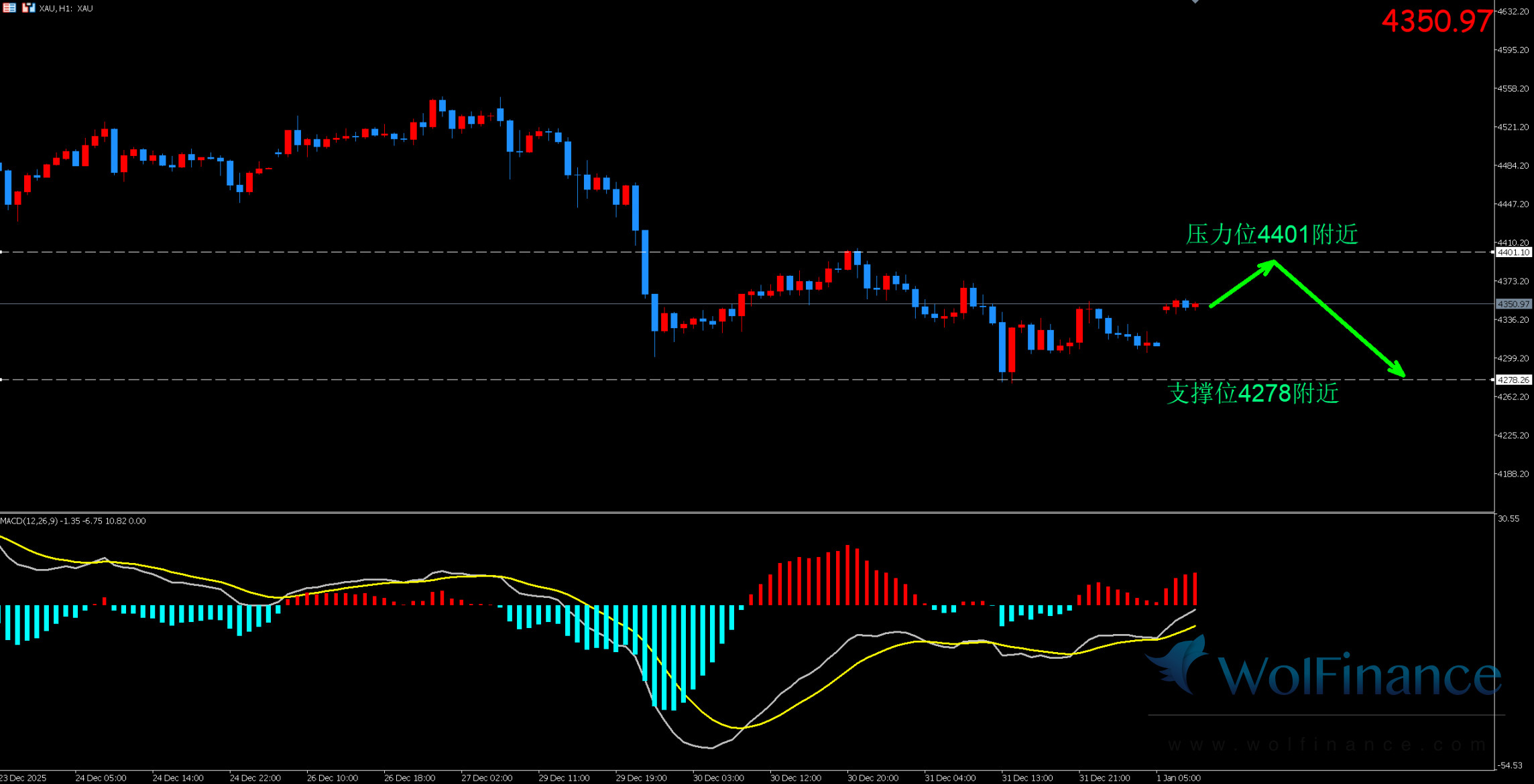 1. 黄金技术图表显示目前K线支撑位4353附近