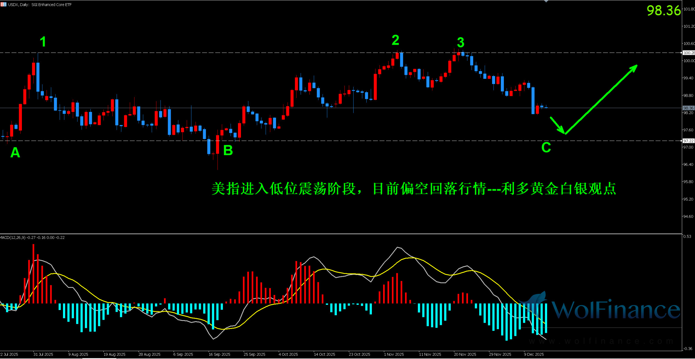 美元指数:图表显示目前美指为震荡反弹行情。