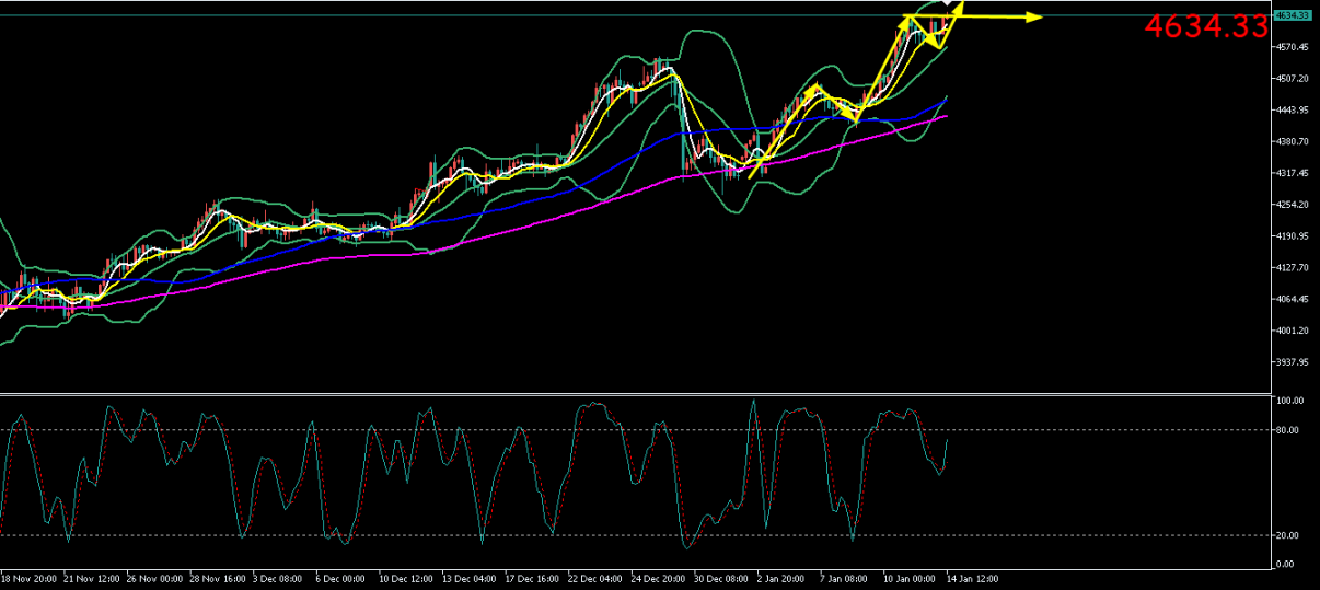 1若价格强势突破并站稳 4650美元 上方,则意味着调整可能结束,可考虑轻仓追多,目标看向4680、4700美元。