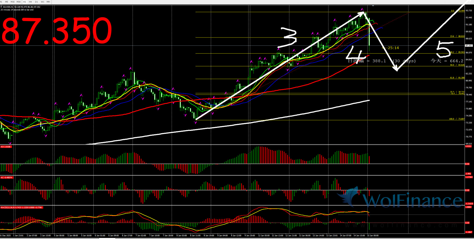1、白银反弹关注91.00附近做空,止损:91.80;目标:89.50;88.00;86.50;