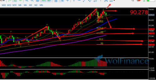 1. 激进者在91.79-90.88空(严格止损),稳健者94.36-95.08空,止损自带0.5美金,目标:超过0.5美金后移动保本损,之后尝试持有1-2美金波动择机出场.