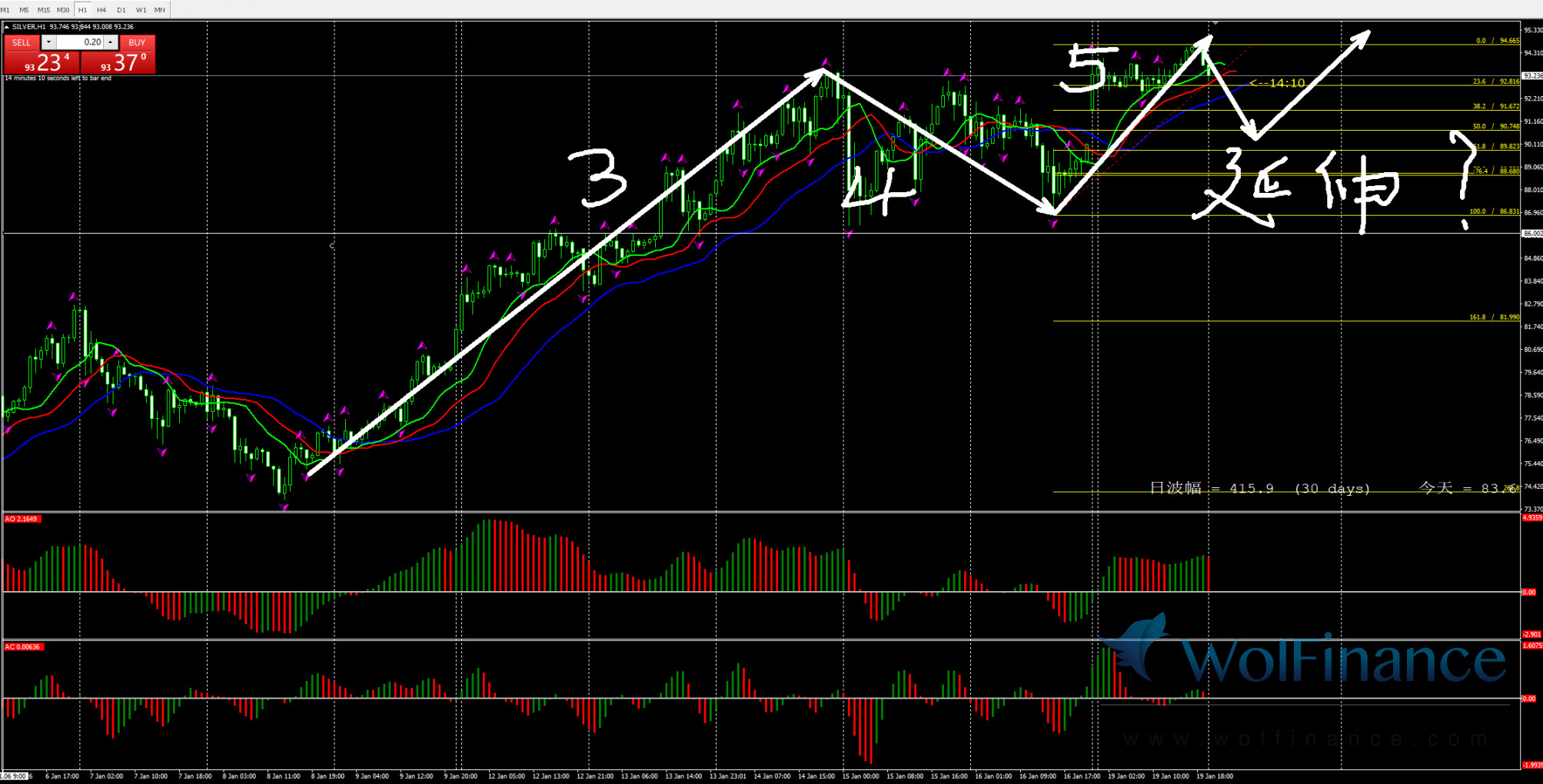 2、白银回调关注90.40附近做多,止损:89.60;目标:91.90;93.40;94.10;