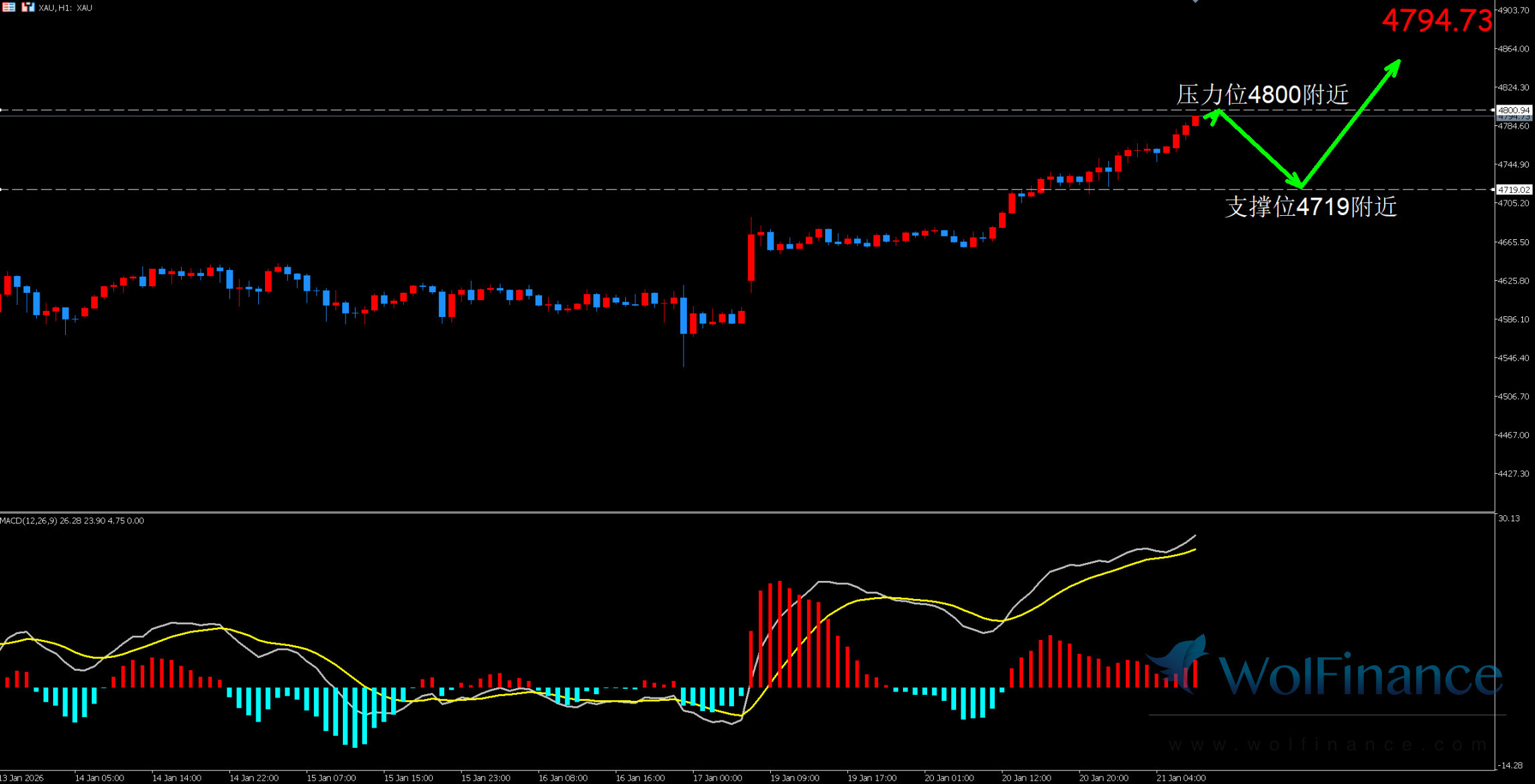 周三(1月21日)亚市早盘,现货黄金交投于4760美元/盎司附近,金价周二刷新历史高位至4766.15美元/盎司,日内或剑指4800美元/盎司,黄金价格狂飙:避险需求与市场动荡的完美共振黄金的这一轮暴涨并非孤立事件,而是地缘政治不确定性与经济因素交织的结果。首先,避险需求成为金价上涨的核心引擎。在特朗普的关税威胁下,美欧关系剑拔弩张,投资者担心这将重演去年“解放日”后的市场混乱。当时,美国股市和国债遭遇抛售潮,如今历史仿佛重演,华尔街主要股指周二跌至近三周低位,道琼斯工业指数更创下1月5日以来新低。这种“抛售美国”交易模式再度上演,反映出市场对美国领导力和资产信心的动摇。黄金作为无收益资产,在经济与政治不稳定时期,总能脱颖而出。2025年,金价已累计飙升64%,进入2026年后又上涨逾10%,这轮涨势正是对全球紧张局势的直接回应。