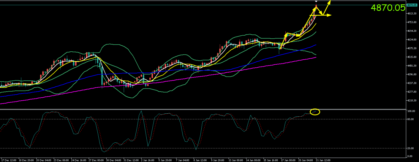 周三(1月21日)亚市,蓄积的买盘力量再度爆发。金价开盘后稍作整理,随即启动新一轮强劲攻势,强势突破4700及4800美元两大整数心理关口。根据最新市场数据,伦敦现货黄金价格盘中首次站上4800美元/盎司大关,最高触及4875美元的历史新高位。金价自高点略有回落,交投于4874美元/盎司附近,日内涨幅惊人,宣告市场已进入全新的价格时代。