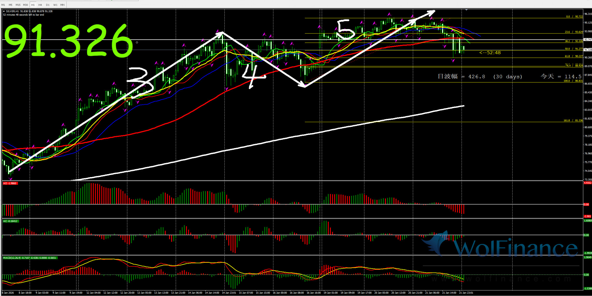 2、白银回调关注86.80附近做多,止损:86.00;目标:87.80;88.80;89.80;
