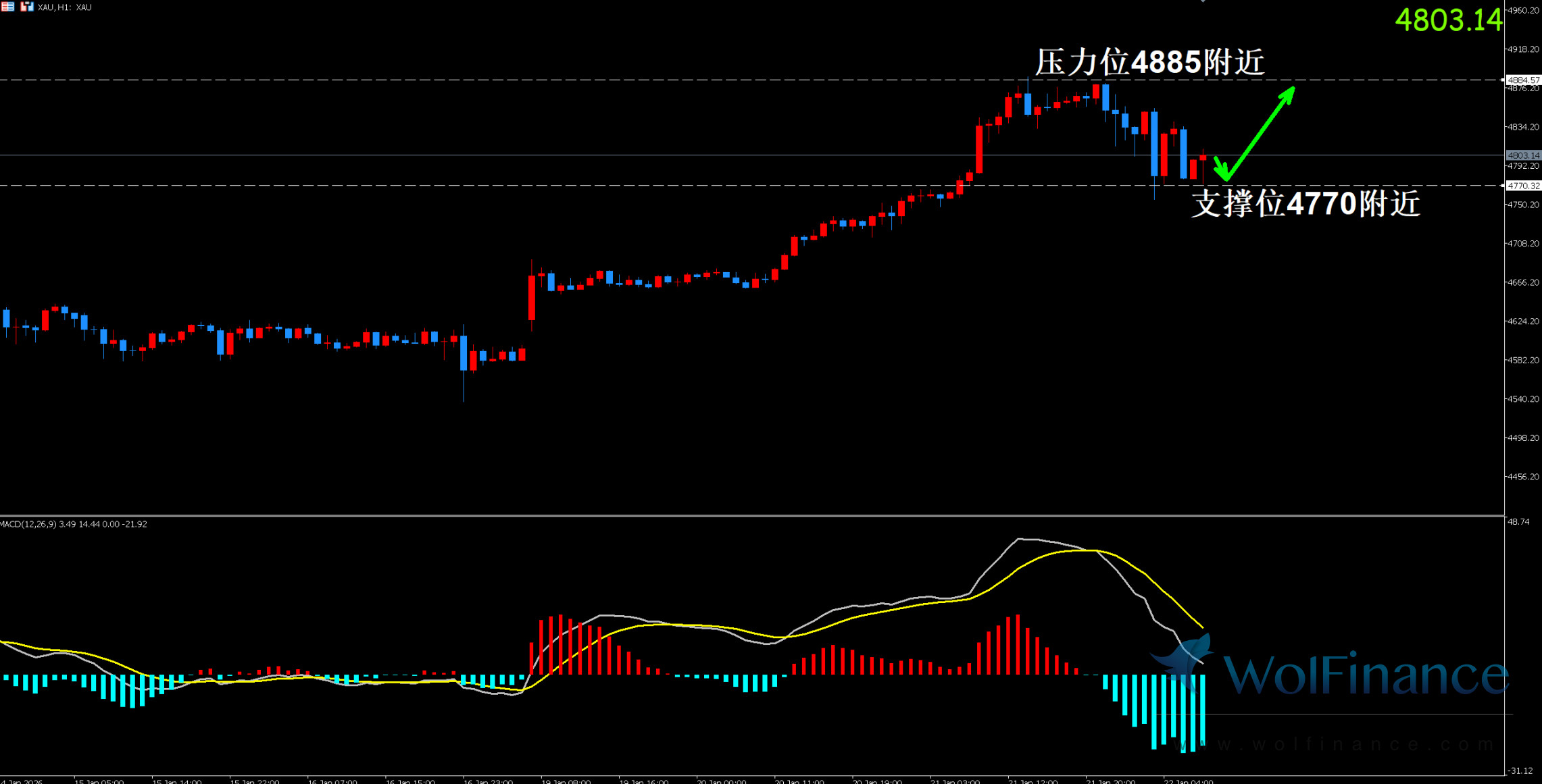周四(1月22日)亚市早盘,现货黄金震荡走弱,再度失守4800关口,目前交投于4780美元/盎司附近,跌幅接近1%,本交易日将出炉美国11月PCE数据和初请失业金人数变动,投资者需要重点关注。,在2026年的开局阶段,全球金融市场犹如过山车般剧烈波动,而黄金作为传统的避险资产,再次成为投资者关注的焦点。昨日美国总统特朗普围绕格陵兰岛的强硬立场及其突然的转折,直接搅动了金市格局。金价创下纪录高位后回落,但本周整体涨幅仍保持正向,这不仅反映出地缘政治风险的瞬息万变,还凸显了黄金在不确定性时代的核心价值。