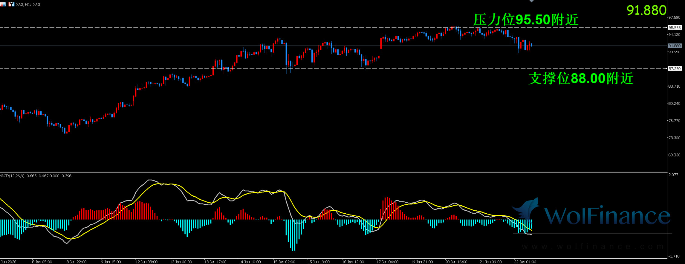 1. 白银技术图表显示目前K线支撑位88.00附近