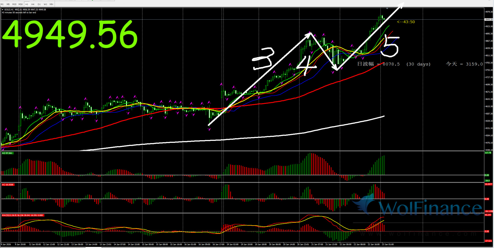 日线级别行情处于5浪行情,关注5浪行情走势,在日线图中关注压力倾向在日线图5021-23一线附近;支撑倾向在日线图50%(4335);61.8%(4230);四小时行情处于5浪状态,关注5浪的行情走势。支撑倾向在4430附近。1小时图AO零轴下红色,AC零轴下红色,代表在小时图中,行情倾向隔夜小时图处在3浪行情,目前在小时图中关注4浪的行情走势,下方支撑4430附近。在1小时图中,行情上涨压力关注4830附近。
