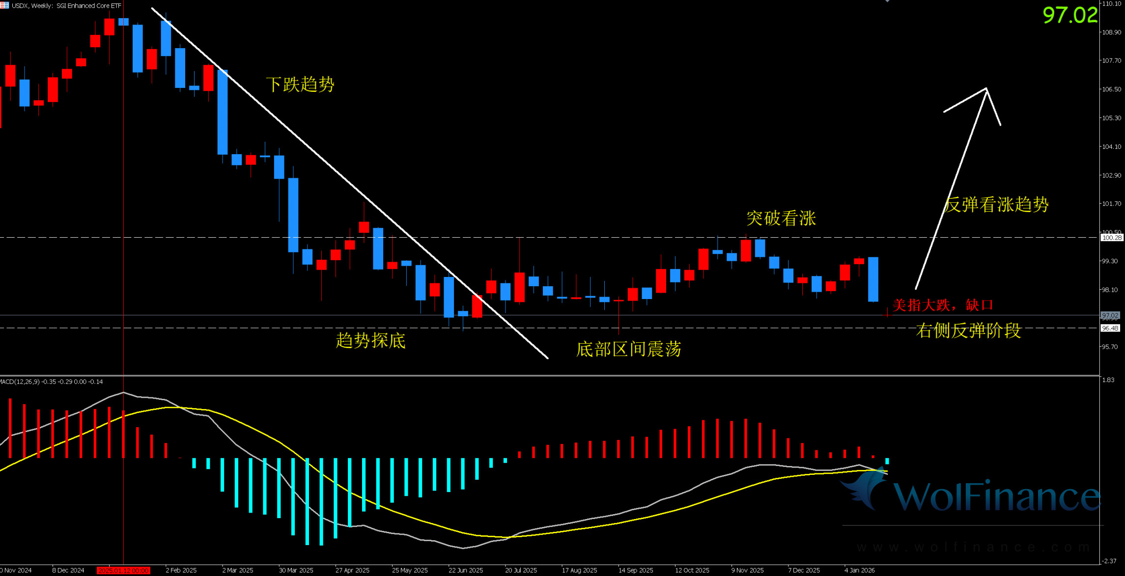 美元指数:图表显示目前美指为震荡反弹行情。