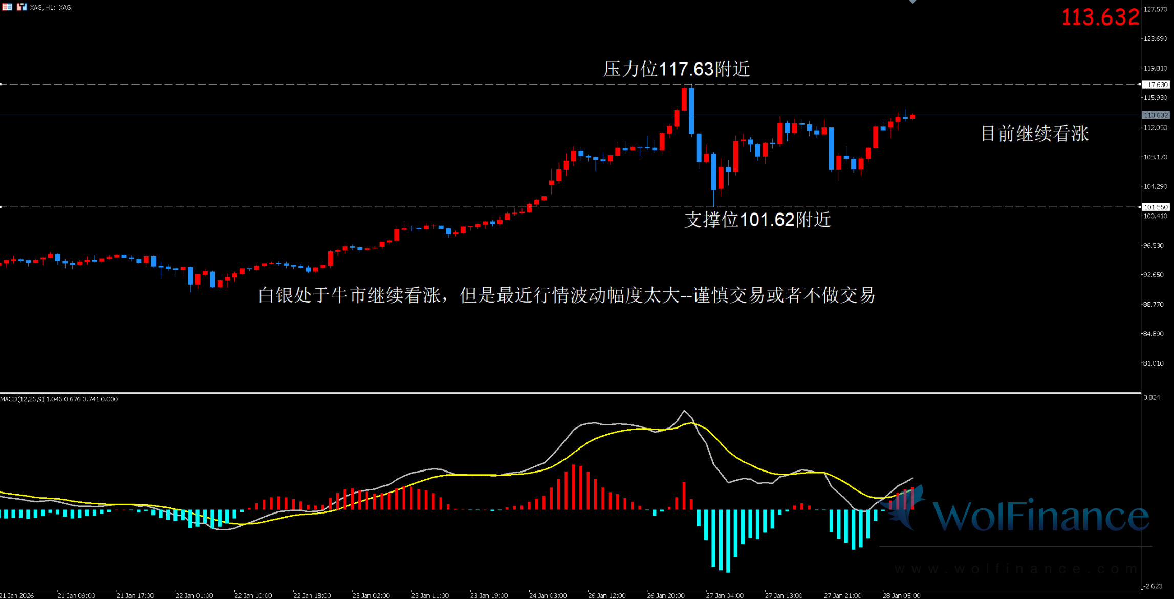 目前白银行情为价格上涨趋势。可以布局支撑多单和压力位空单思路。