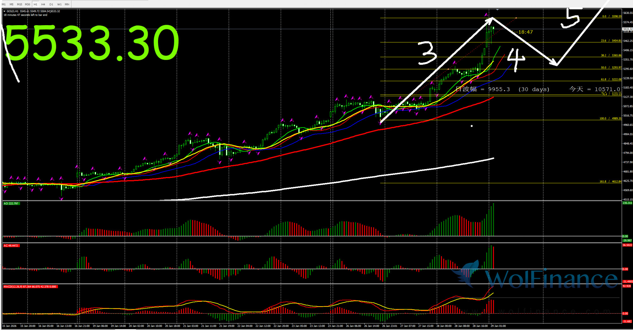 日线级别行情处于3浪行情,关注3浪行情走势,在日线图中关注压力倾向在日线图5661-63一线附近;支撑倾向在日线图50%(4800);61.8%(4611);四小时行情处于3浪状态,关注3浪的行情走势。支撑倾向在4830附近。1小时图AO零轴上绿色,AC零轴上红色,代表在小时图中,行情倾向隔夜小时图处在3浪行情,目前在小时图中关注3浪的行情走势,下方支撑4830附近。在1小时图中,行情上涨压力关注5661-63附近。