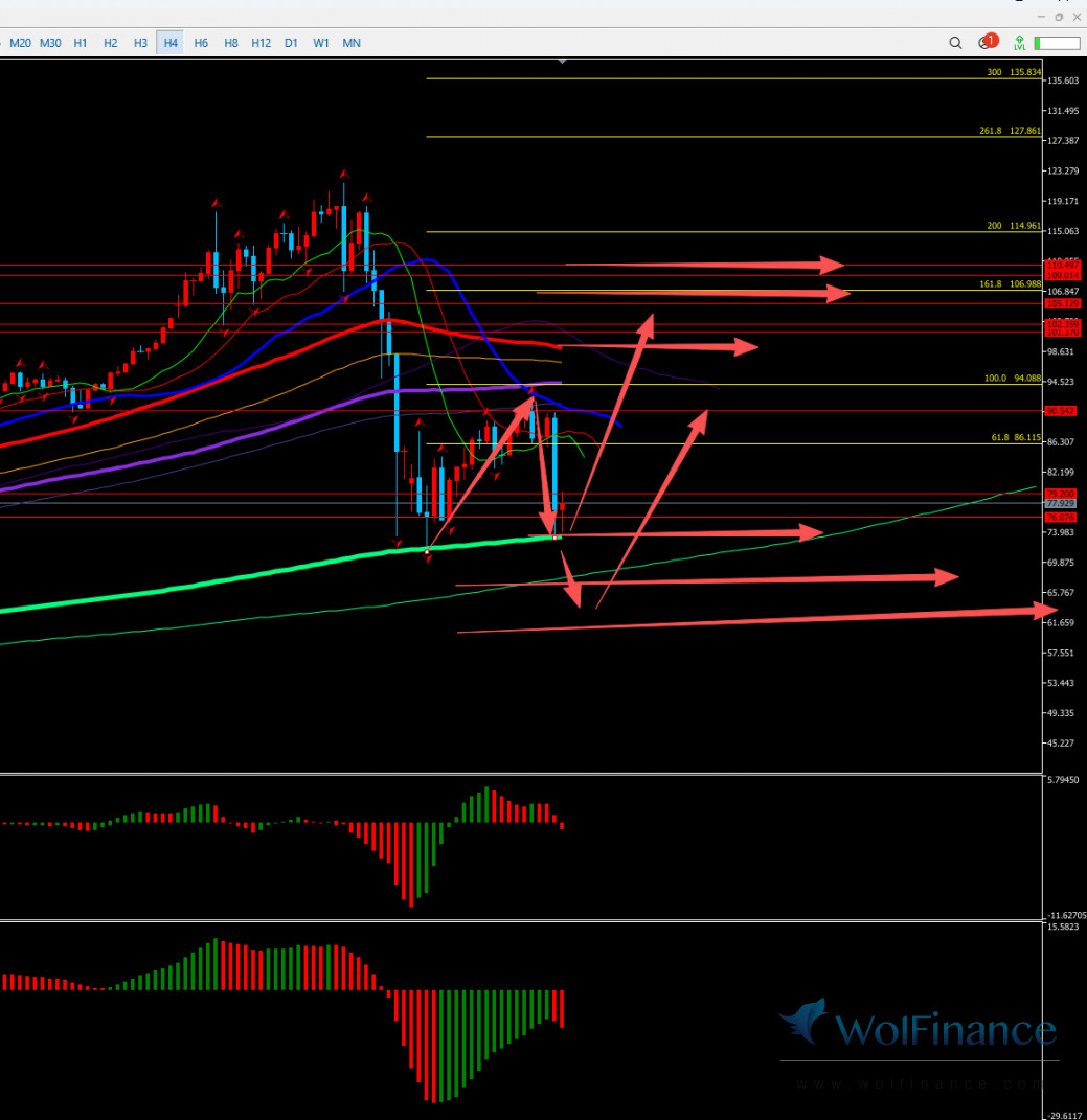 2.激进者76.02-74.09附近多,稳健者在68.63-65.13附近多,止损自带1美金,目标:超过1.2美金后移动保本损,之后尝试持有1-2美金波动择机出场.