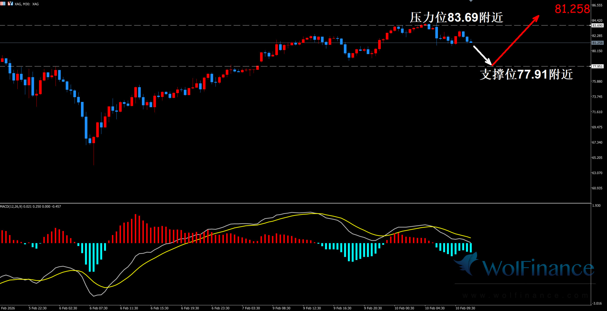 1.布局方案1:77.91附近多单布局,止损77.30, 止盈83.69----85.90区间,