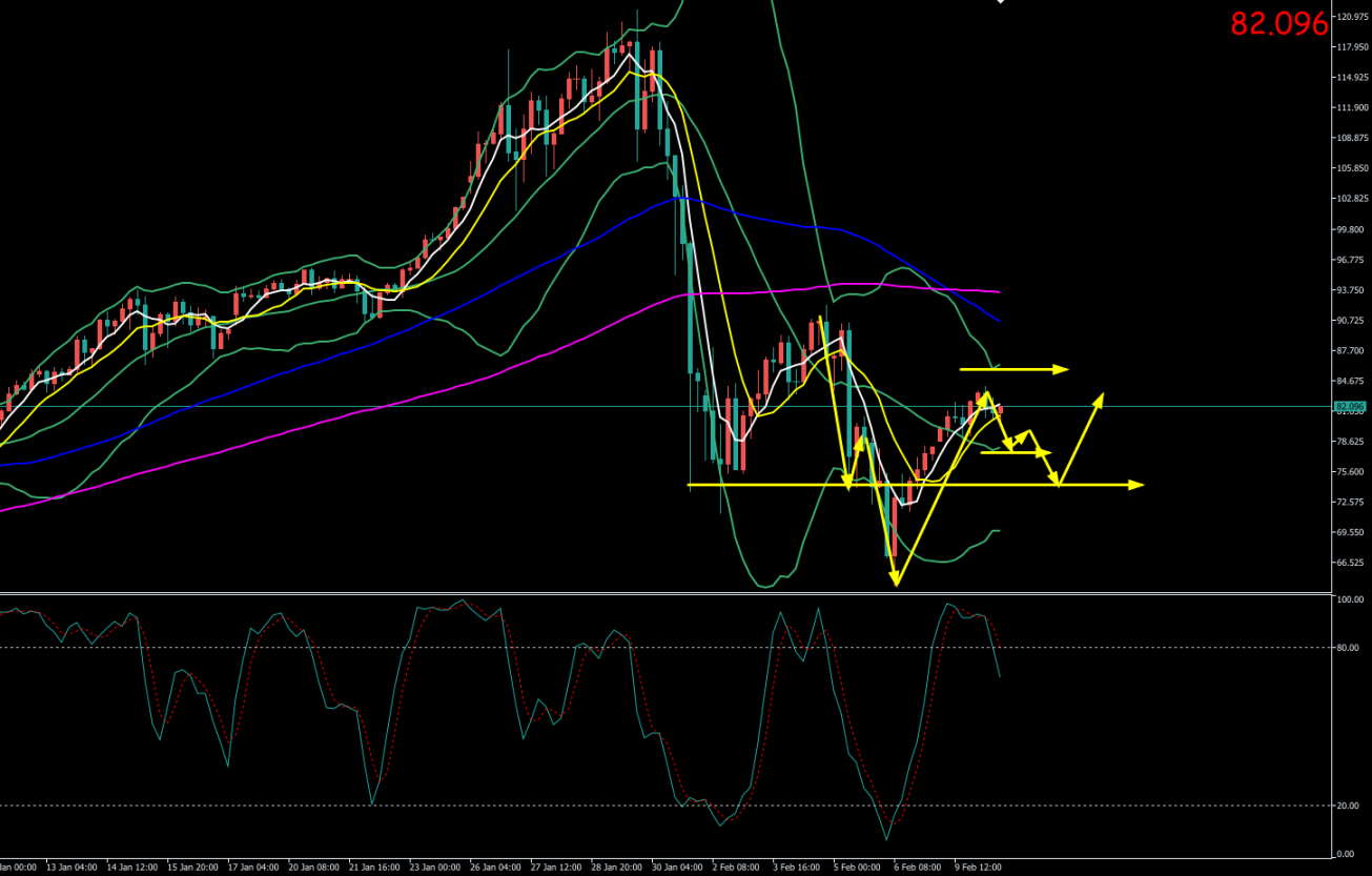 2欧盘上方再次试探次高点不破84.1附近可尝试轻仓做空,止损84.4 目标关注下方78 75.6