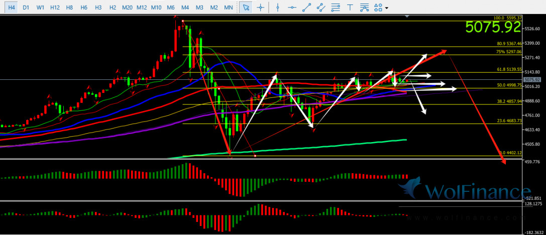1. 激进者在5093-5080试空(严格止损),稳健者5230-5280空,止损18-25美金,若走出25美金以上利润后下移保本损后看40-60美金平仓。