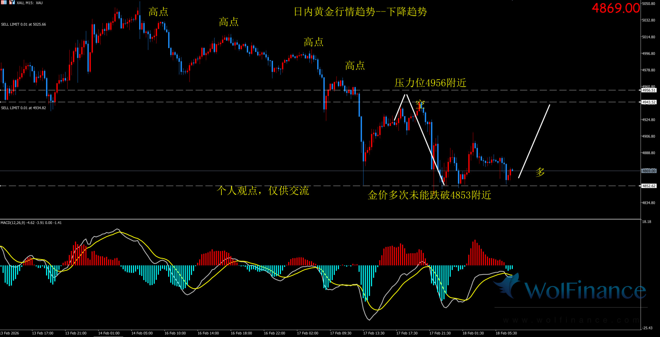 1. 黄金技术图表显示目前K线支撑位4853附近