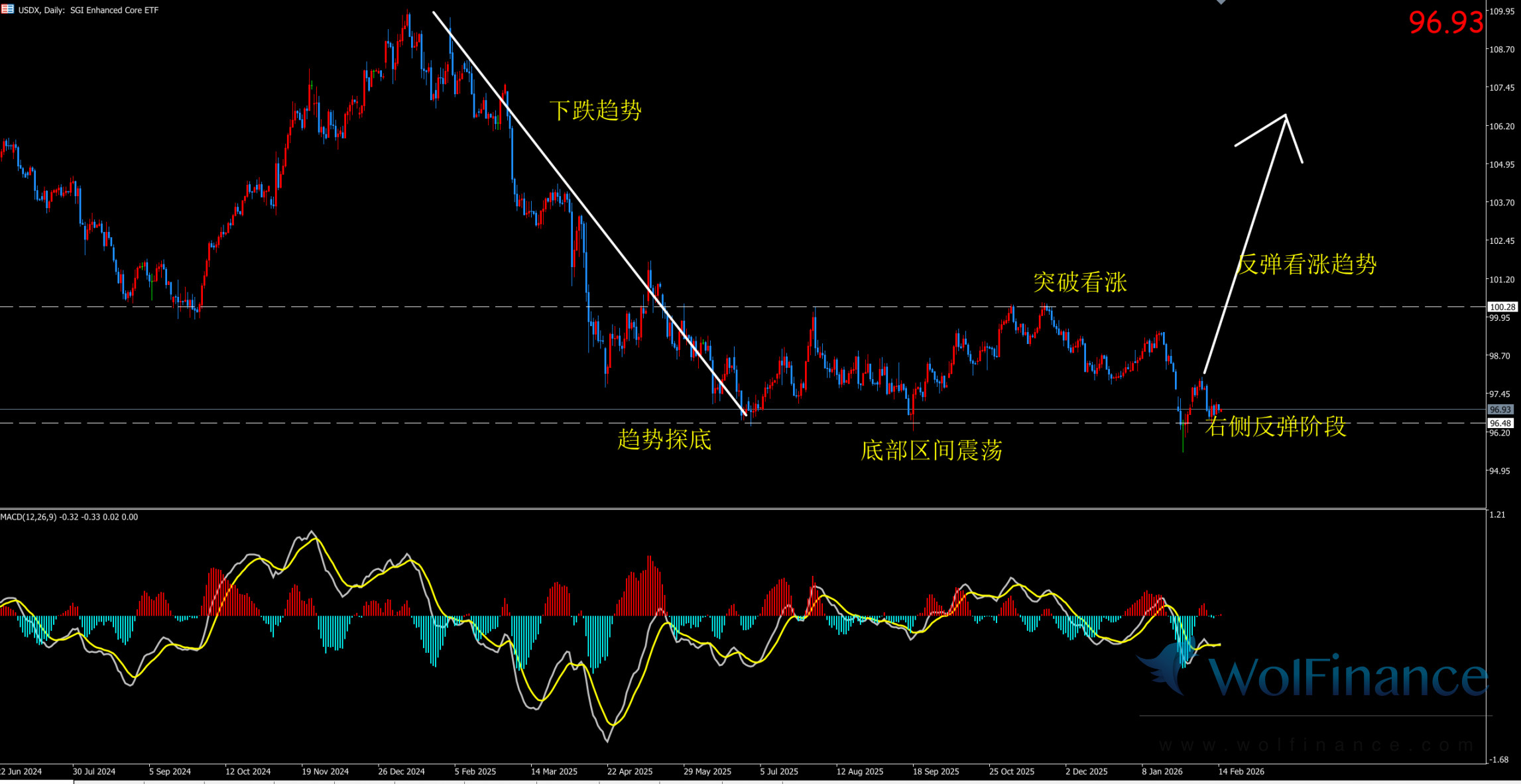 美元指数:图表显示目前美指为震荡反弹行情。