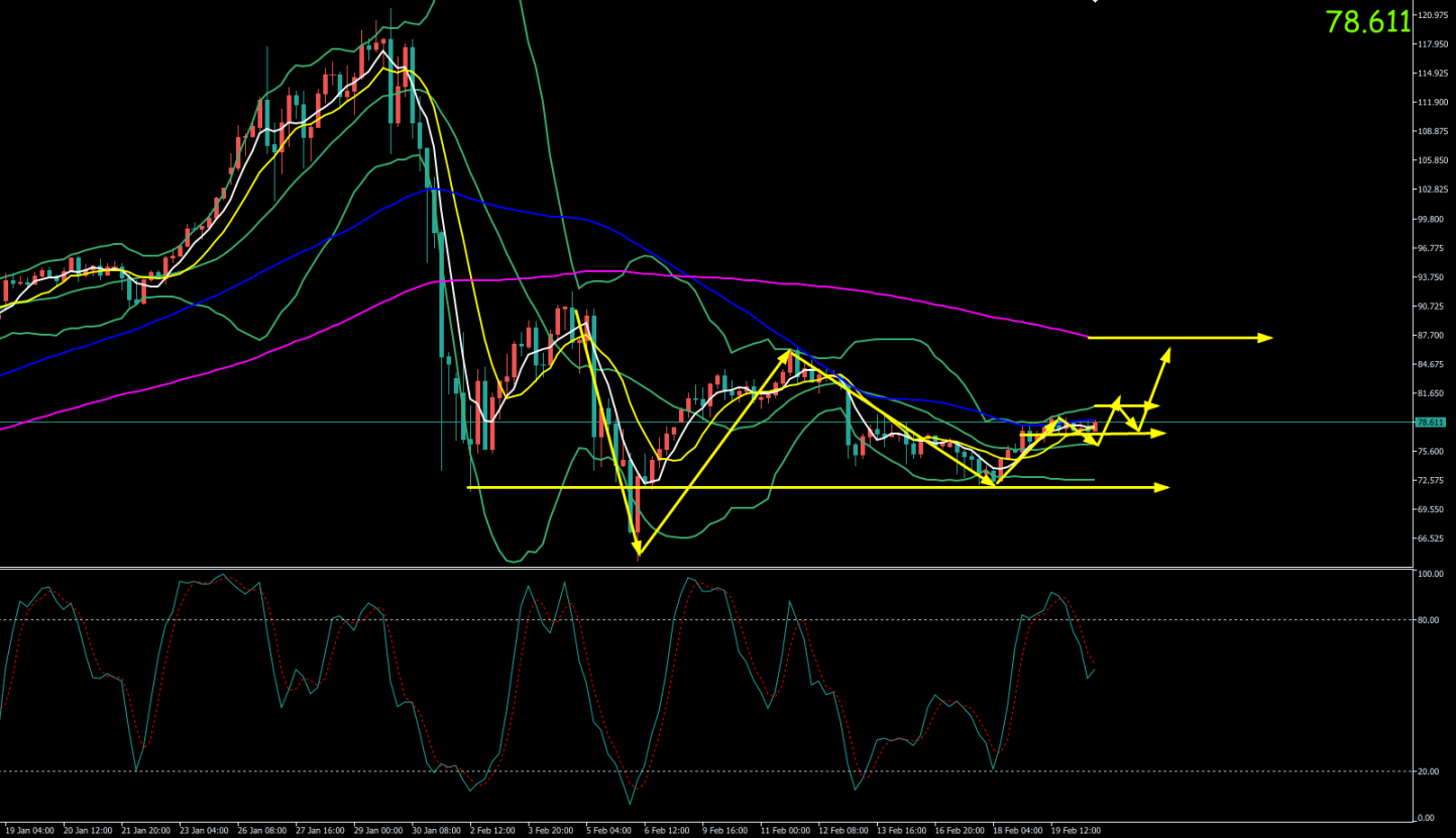 下方支撑位:77.20 / 76.50 / 75.80