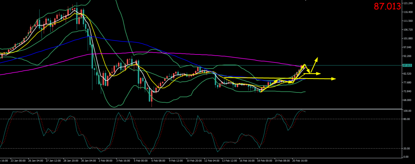 2高空位置关注89.35(激进的投资者):若欧美盘时段银价向上试探89.35美元亚盘高点,可考虑轻仓博回撤,止损设于89.6美元下方,目标看向87.60, 85.30美元。