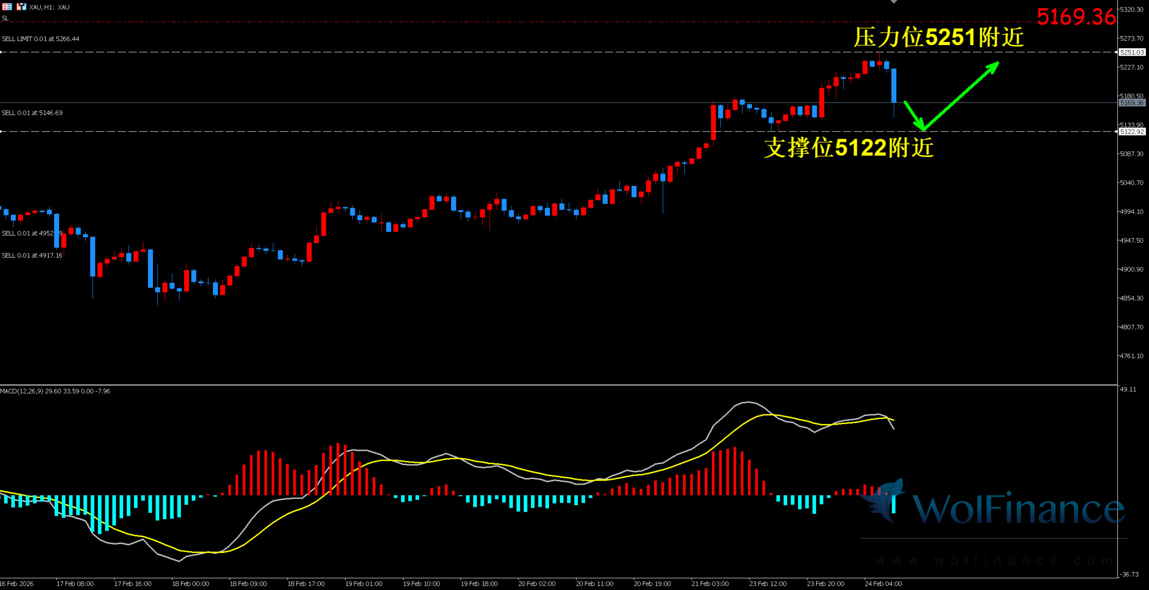 1. 黄金技术图表显示目前K线支撑位5122附近