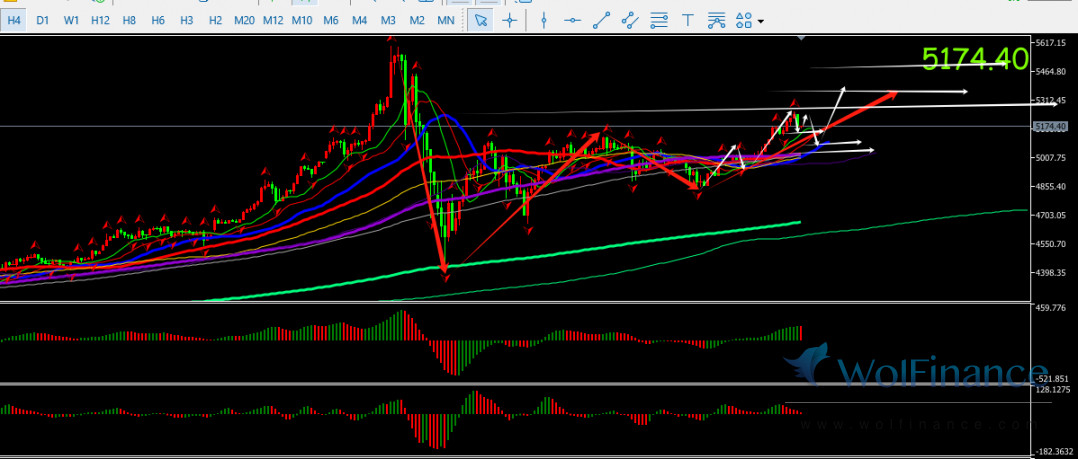 2.激进者在5059-5020试多(严格止损),稳健者在附近4988-4938做多,止损18-25美金,若走出25美金以上利润后上移保本损后看40-60美金平仓。